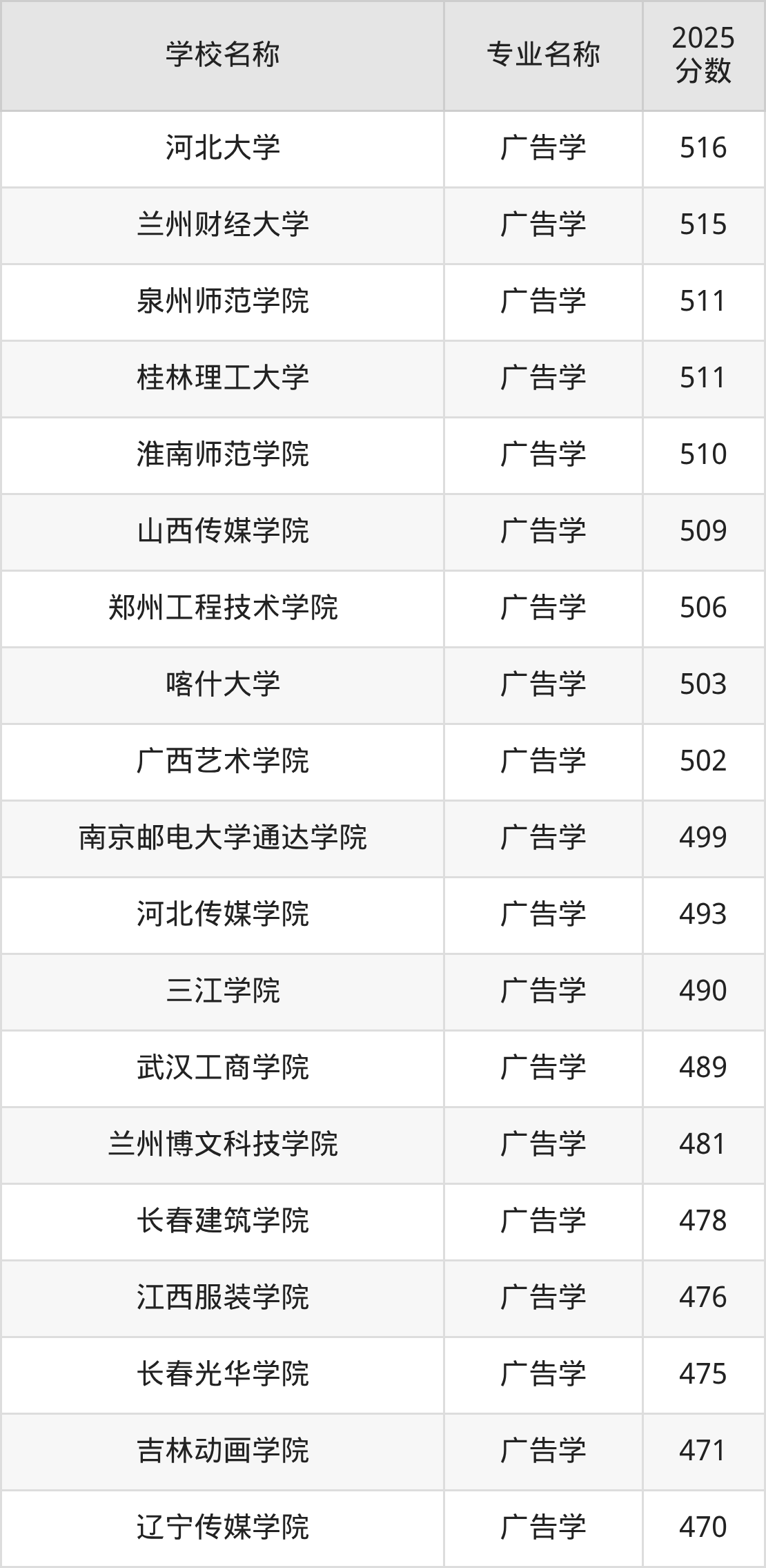 下文将为大家展示山东省大学广告学专业2025年在山东高考的最低录取分数线!