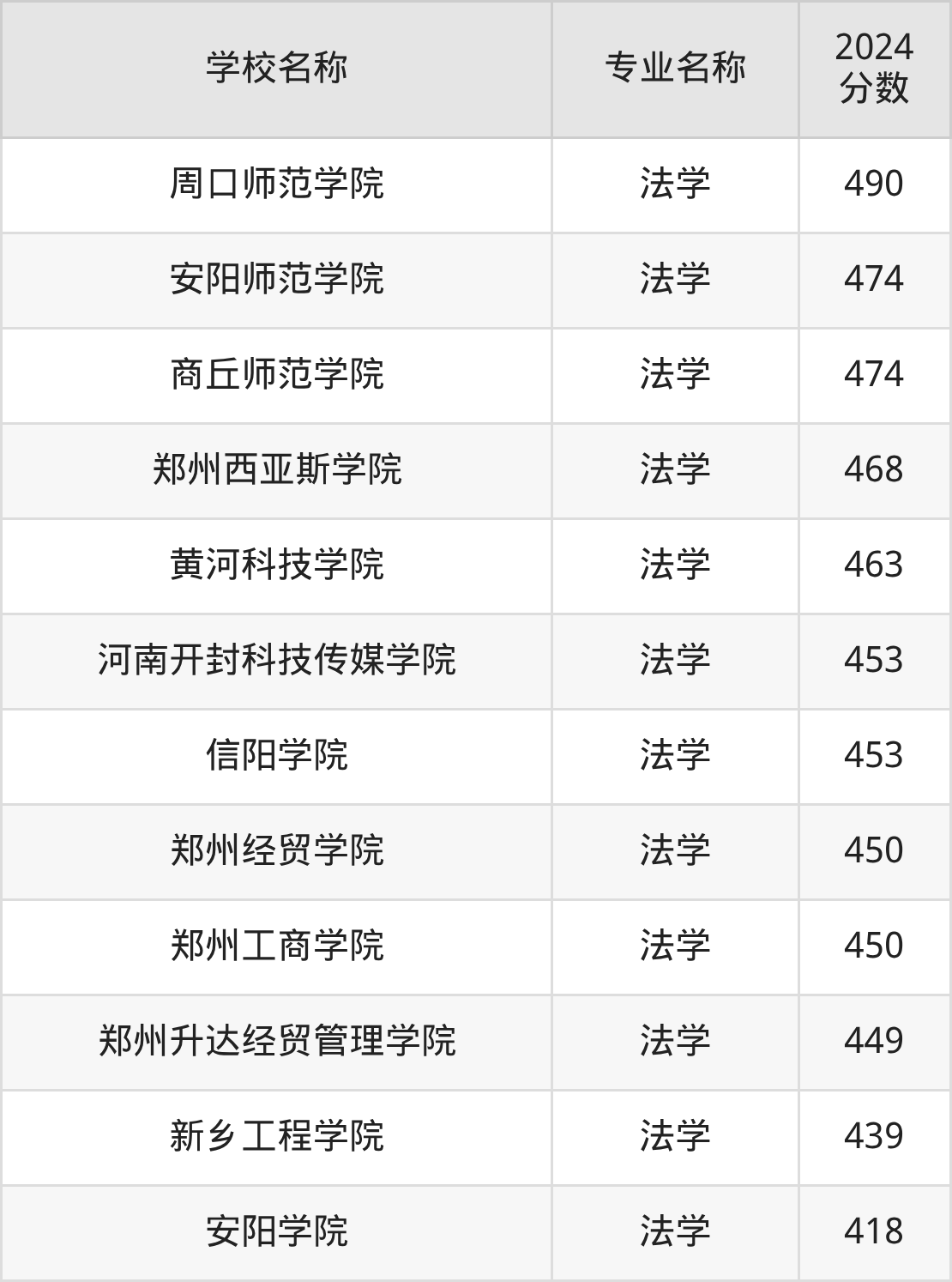 | 河南开封科技传媒学院 | 法学 | 484 |