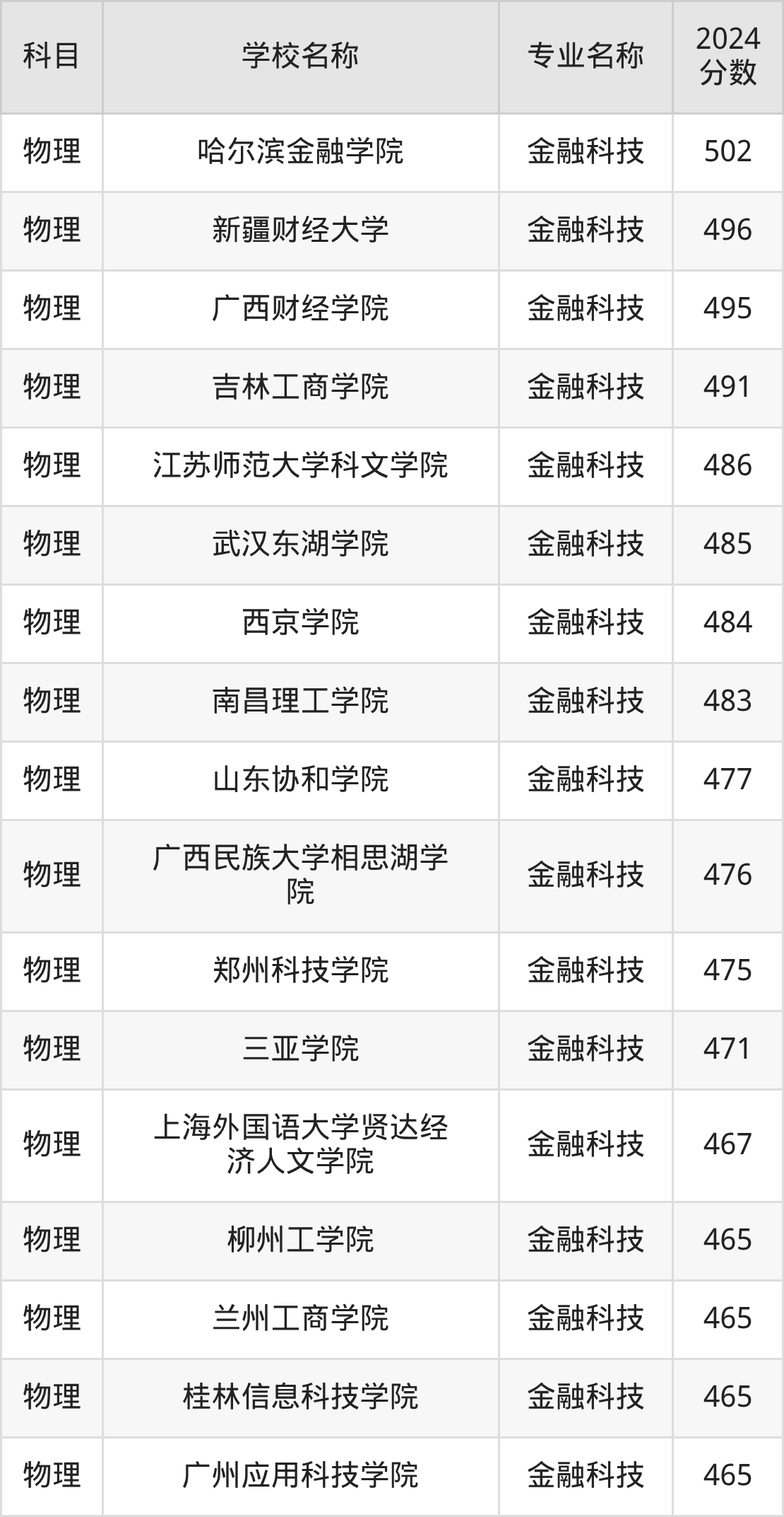 安徽高考物理组:金融科技专业的最低分是469分~515分