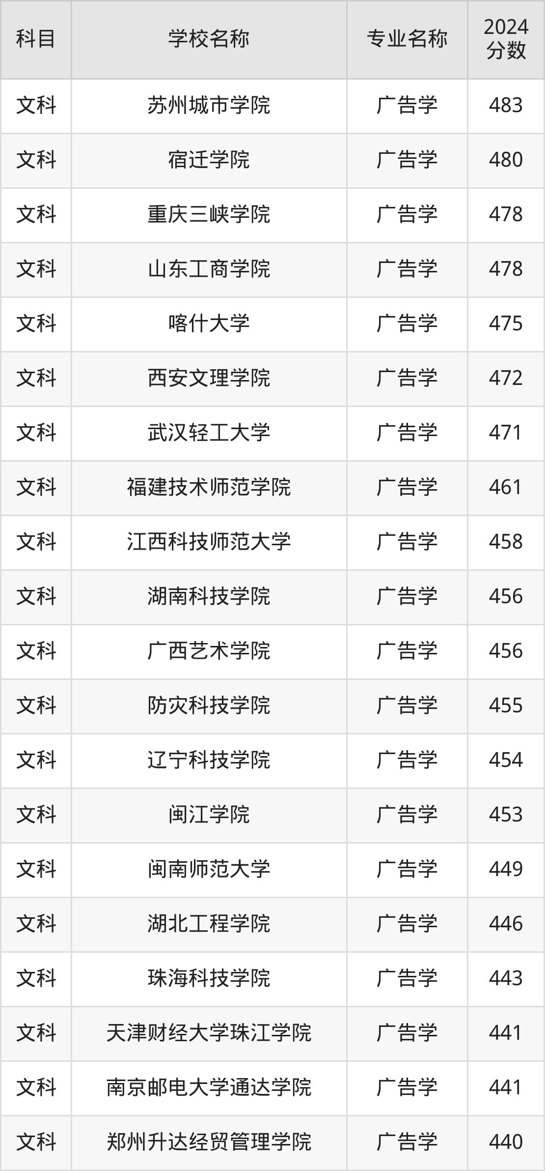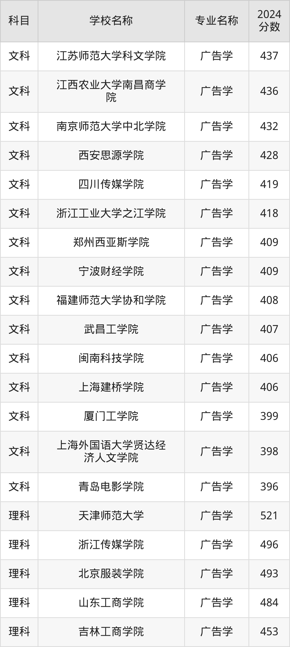 下文将为大家展示山西省大学广告学专业2024年在山西高考的最低录取分数线!