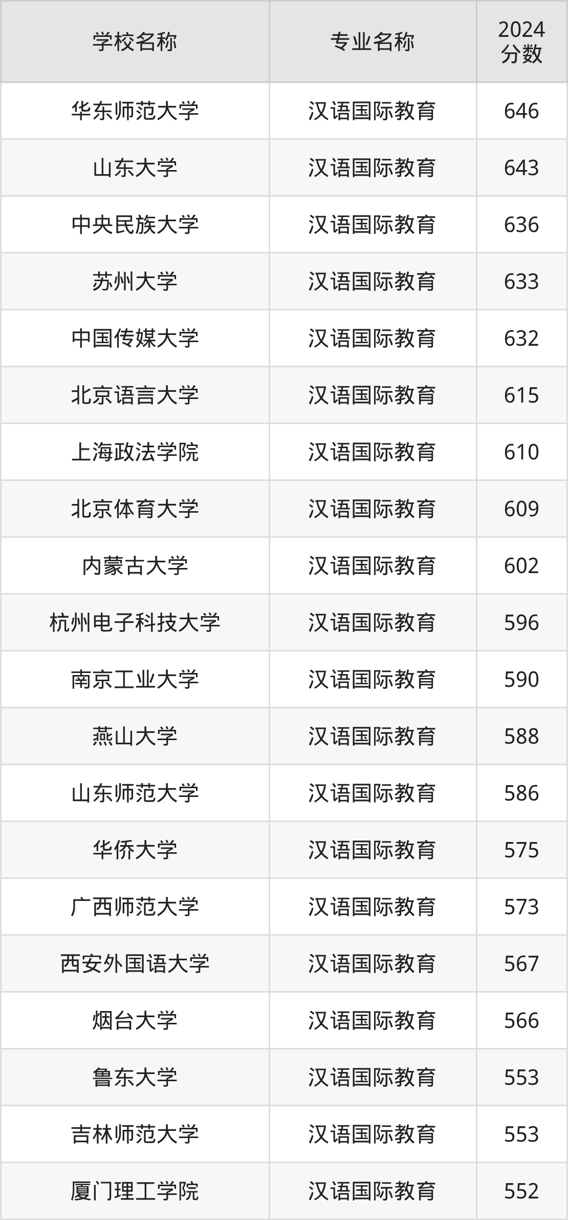 | 天津师范大学 | 汉语国际教育 | 576 |