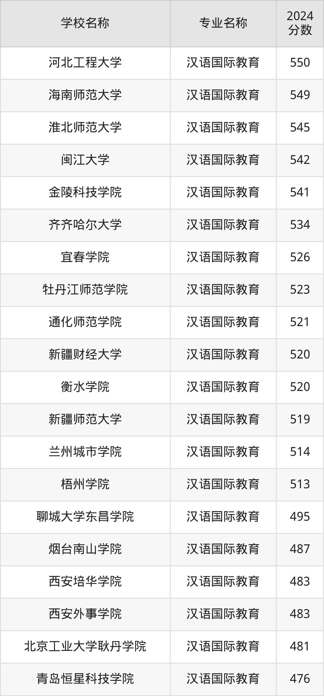 | 天津财经大学珠江学院 | 汉语国际教育 | 500 |