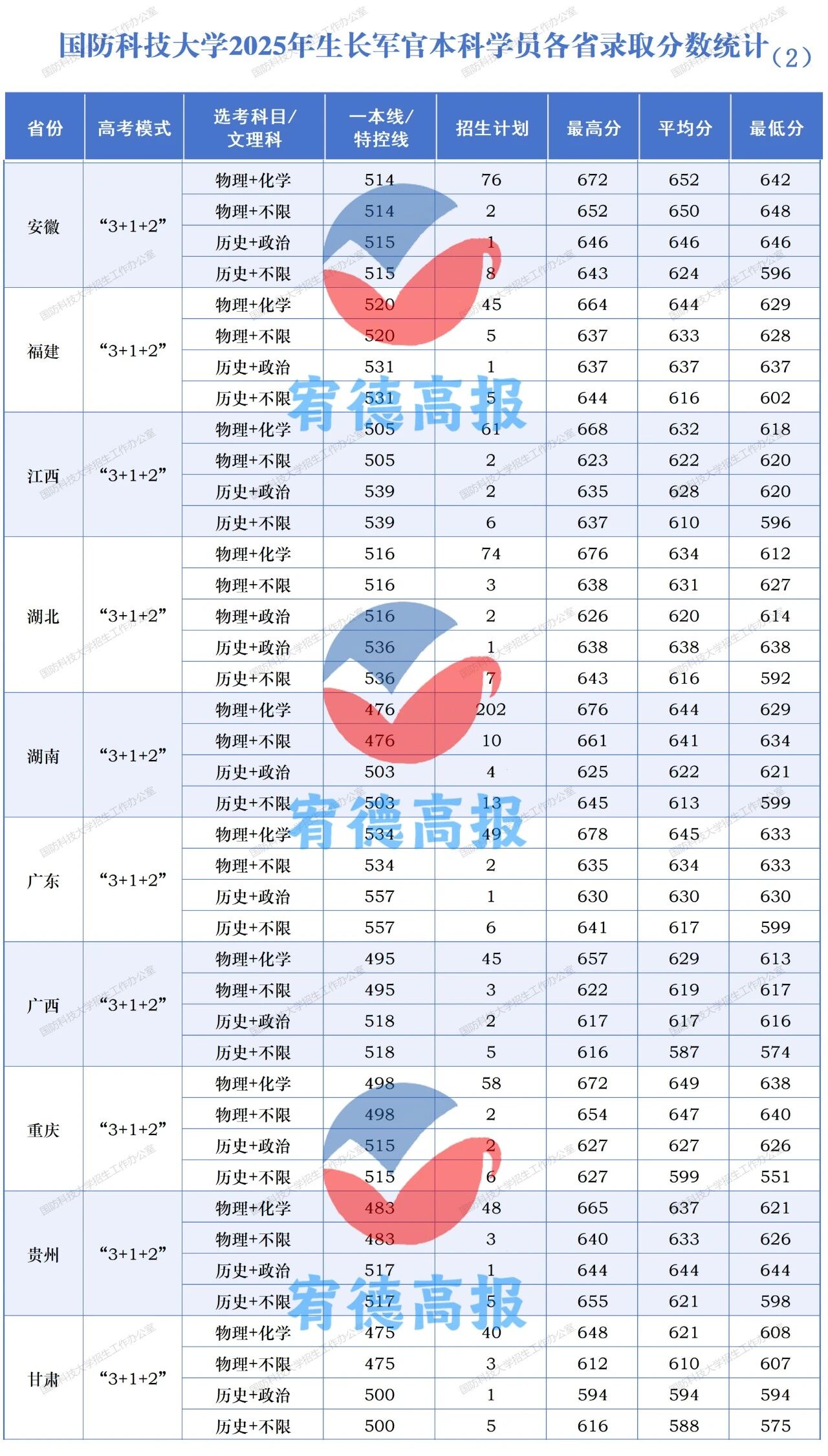 | 甘肃 | 物理+化学 | 475 | 608 |