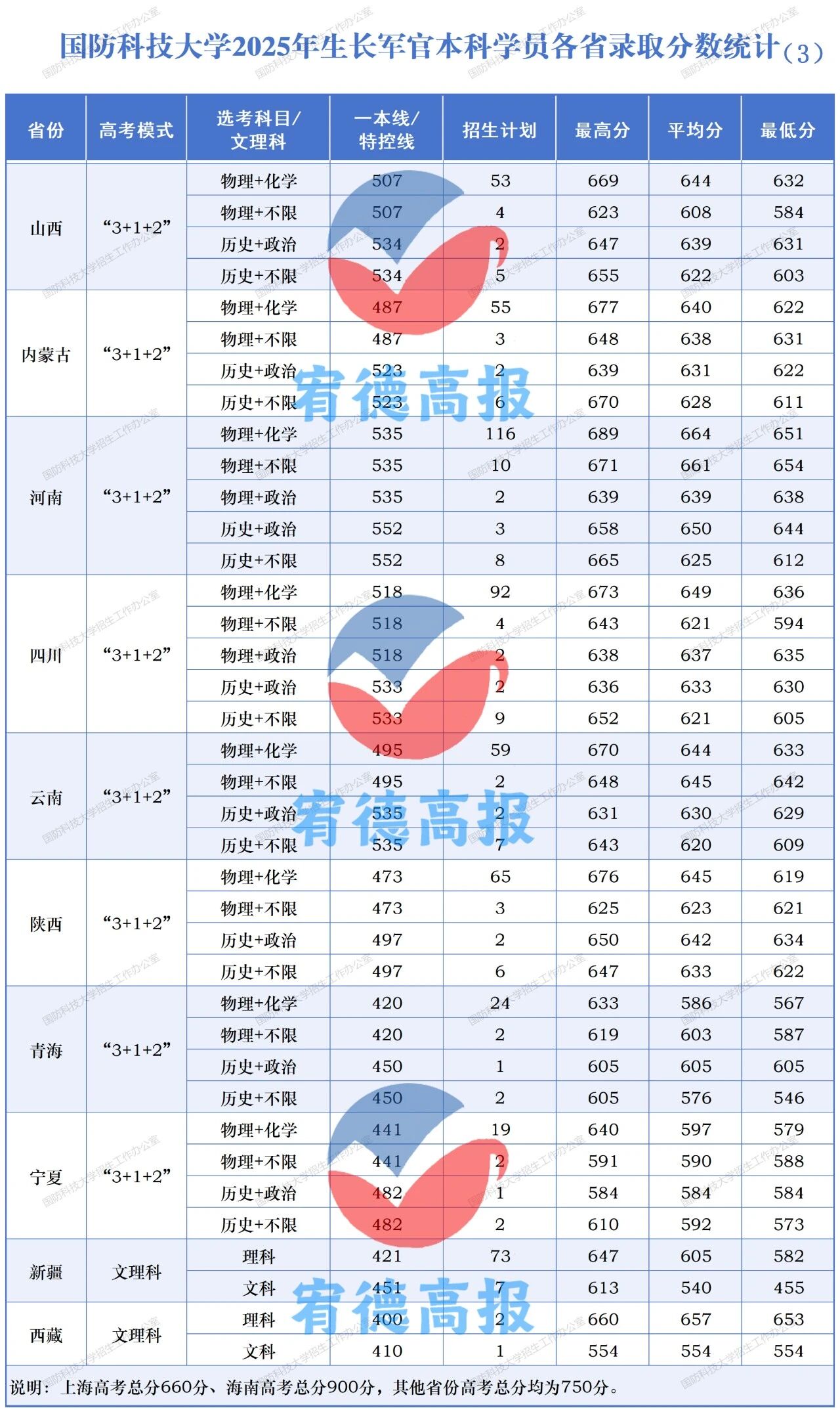 | 河南 | 物理+化学 | 535 | 651 |