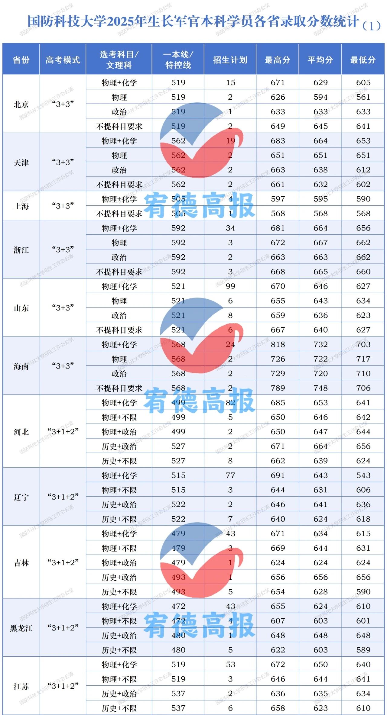 一、2025国防科技大学录取分数线