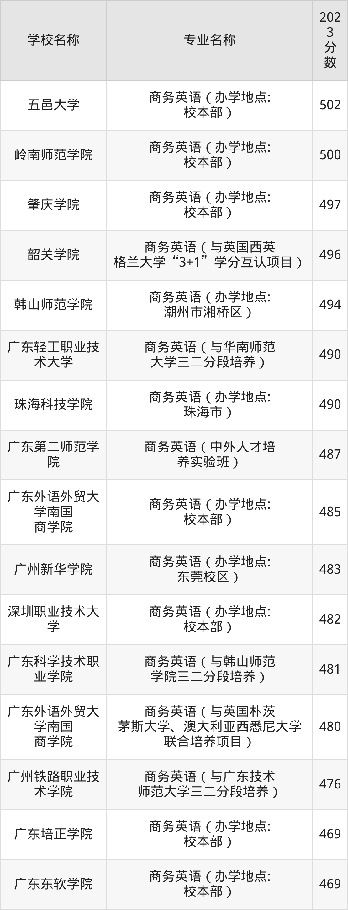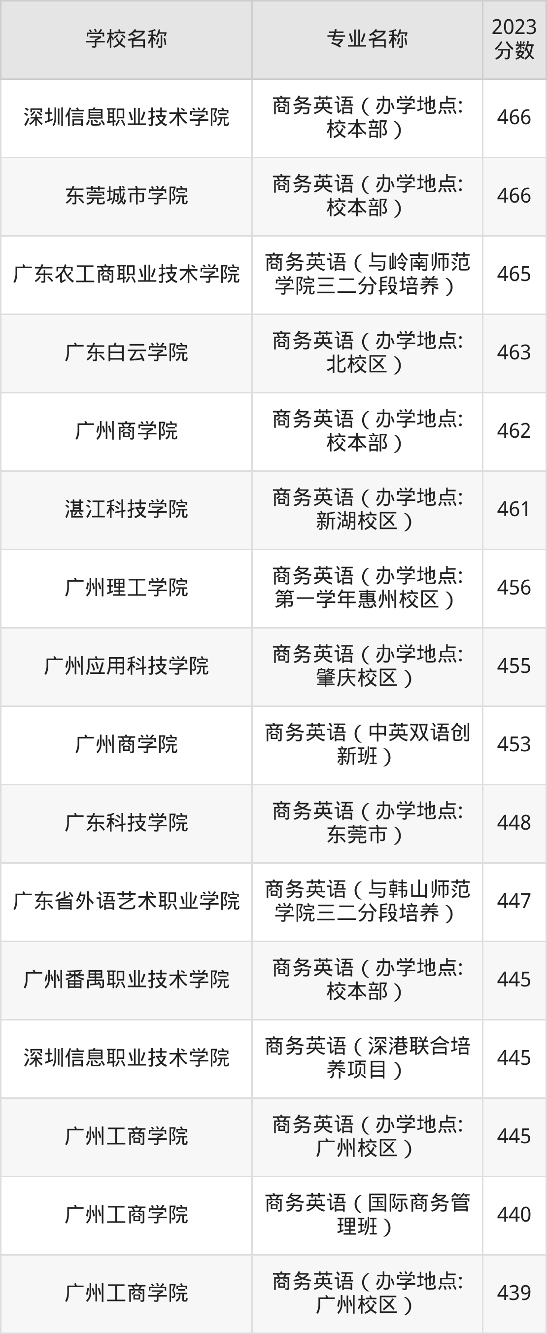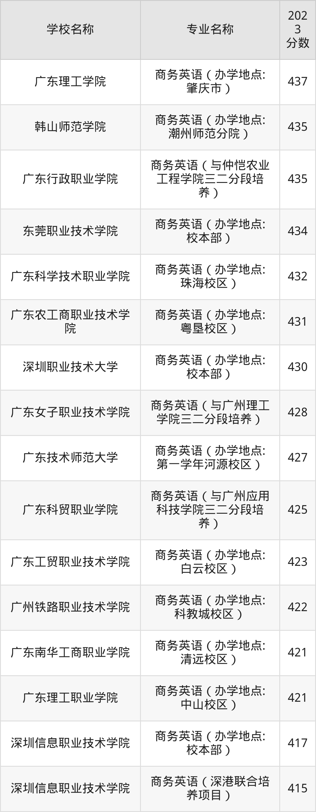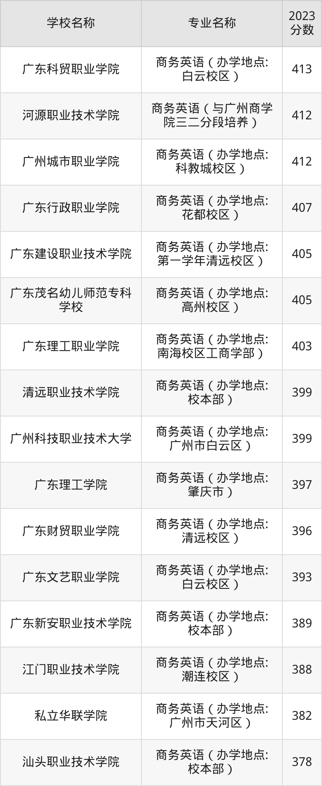 | 广东理工职业学院 | 商务英语(办学 地点:南海校区 工商学部) | 390 |