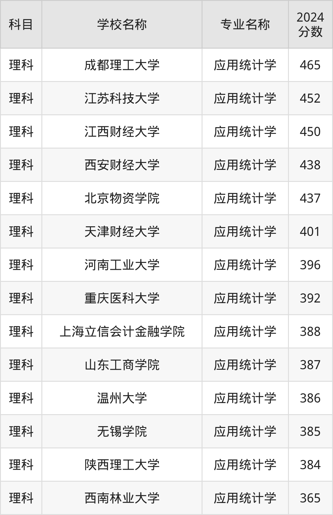 新疆高考理科:应用统计学专业的最低分是310分~395分
