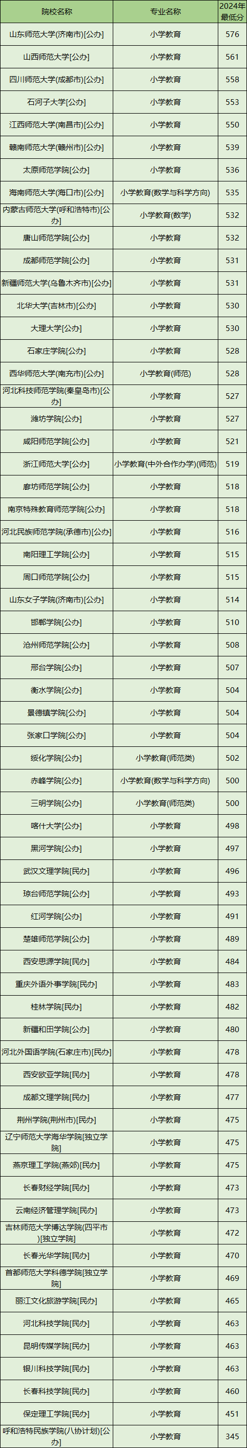 一、2024年各大学小学教育专业分数线