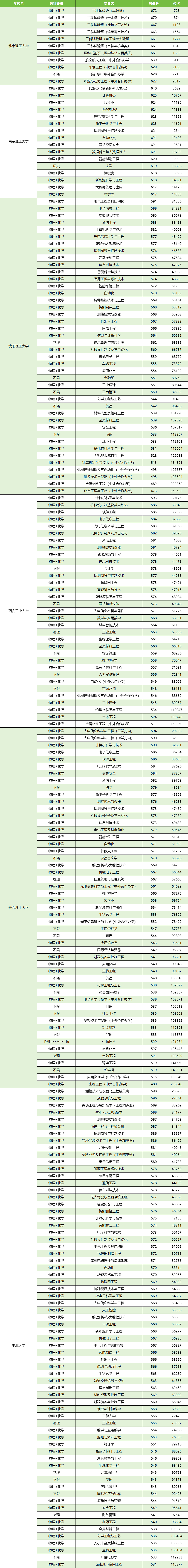 1. 顶尖分段:北理南理(适合全省前1%考生)