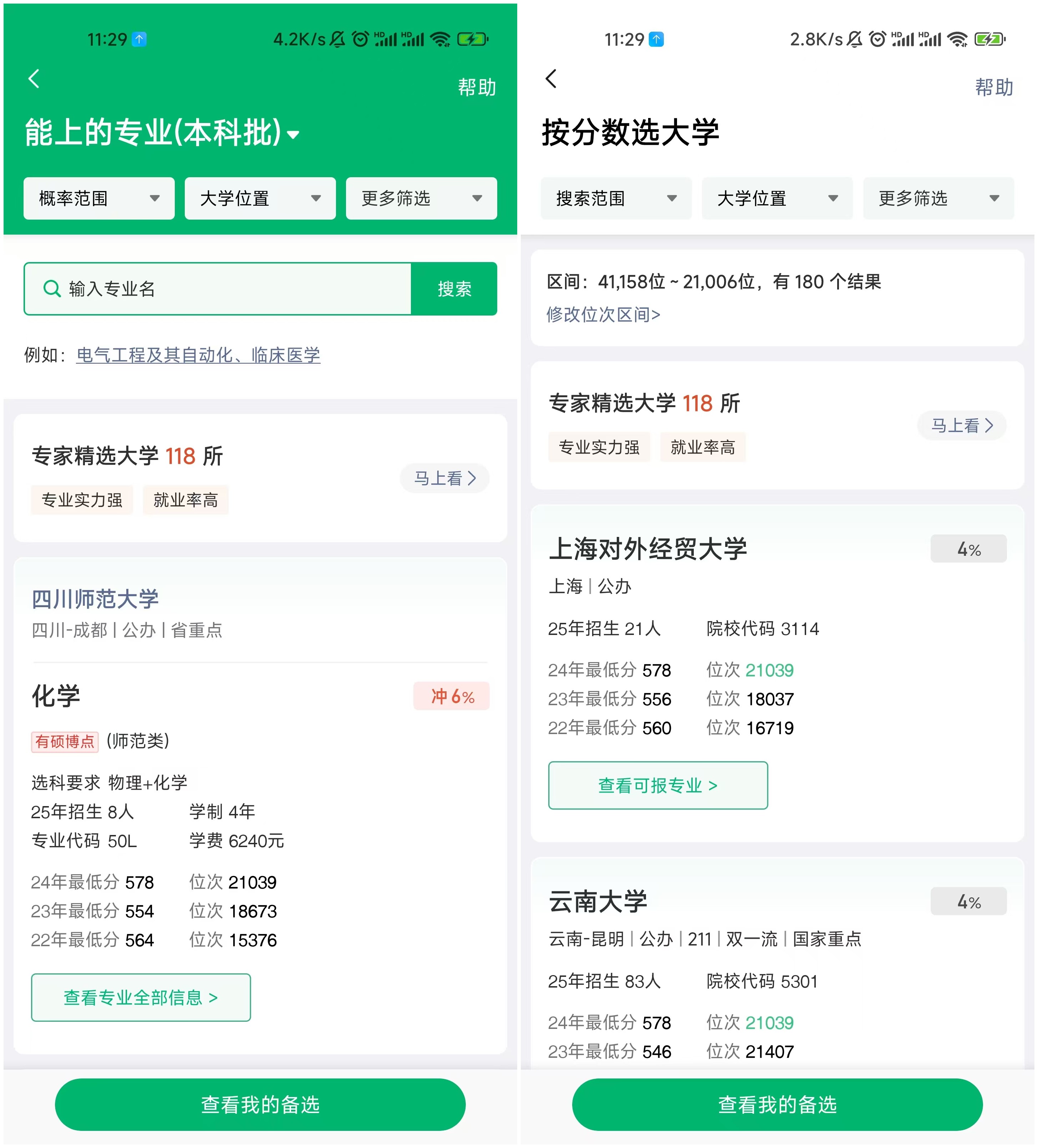 考生只需在首页输入自己的高考分数和选科组合(如物理类或历史类),系统便会根据历年录取数据、分数段位次、招生计划等多维信息,智能生成一份可报考院校清单。
