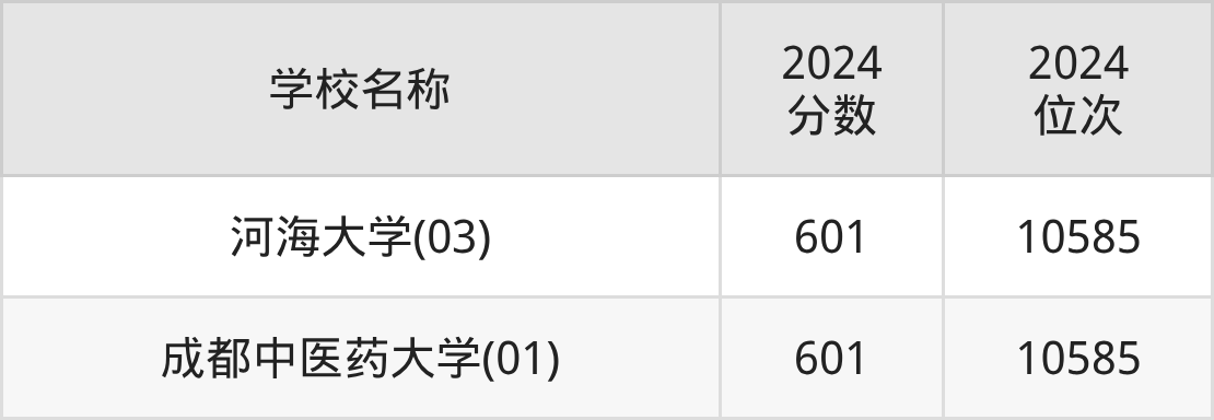 | 中国药科大学(02) (中外合办) | 601 | 11659 |
