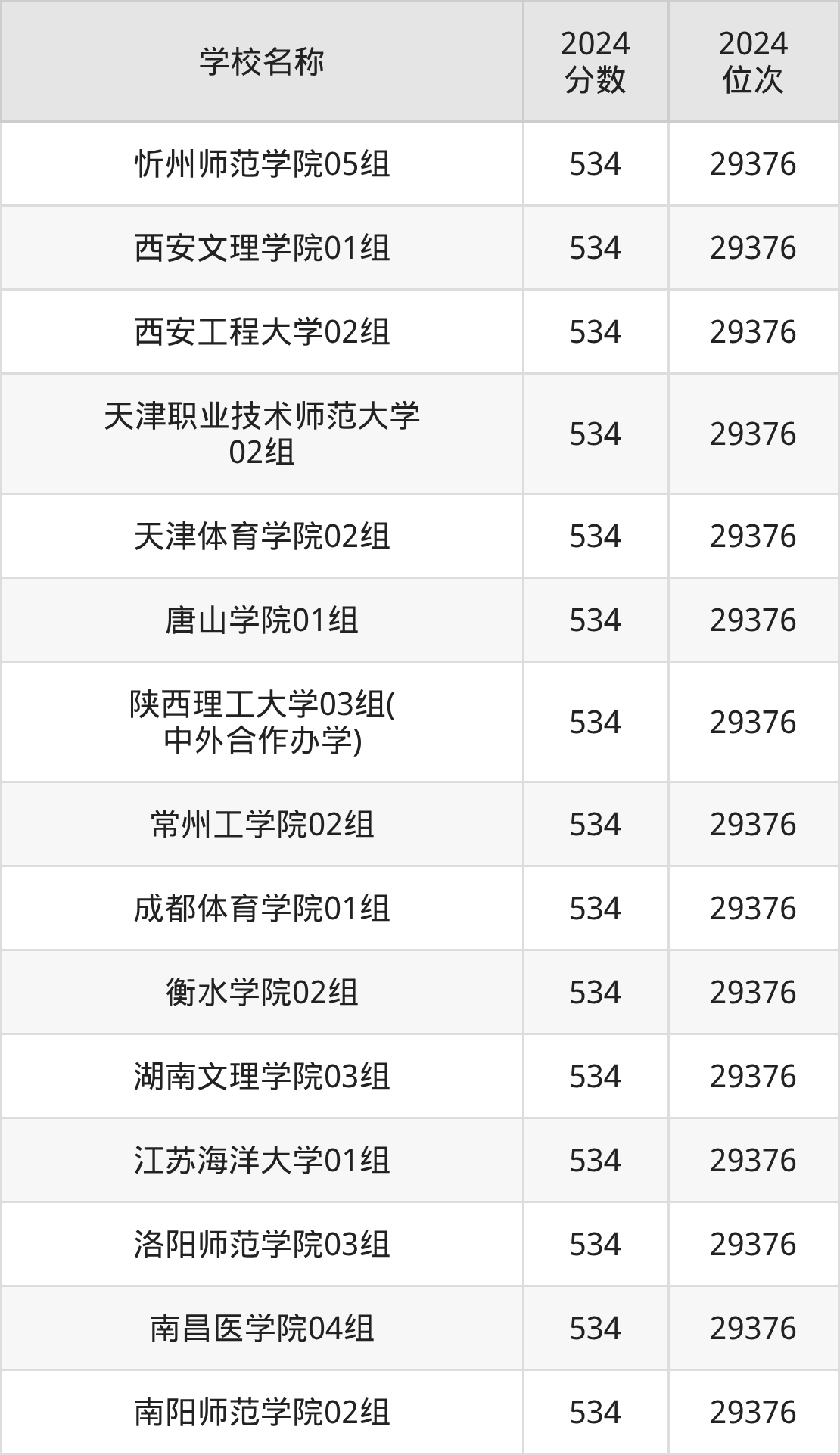 其中,534分位于天津的学校有天津职业技术师范大学、天津体育学院。