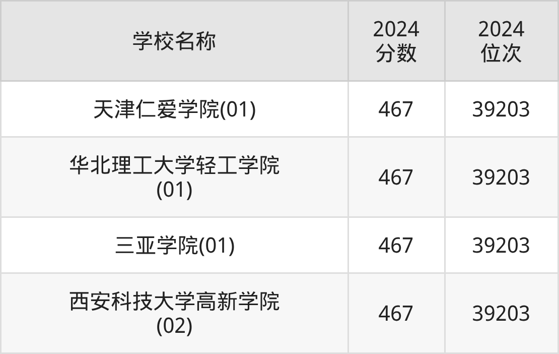 | 天津财经大学珠江学院 (01) | 467 | 38876 |