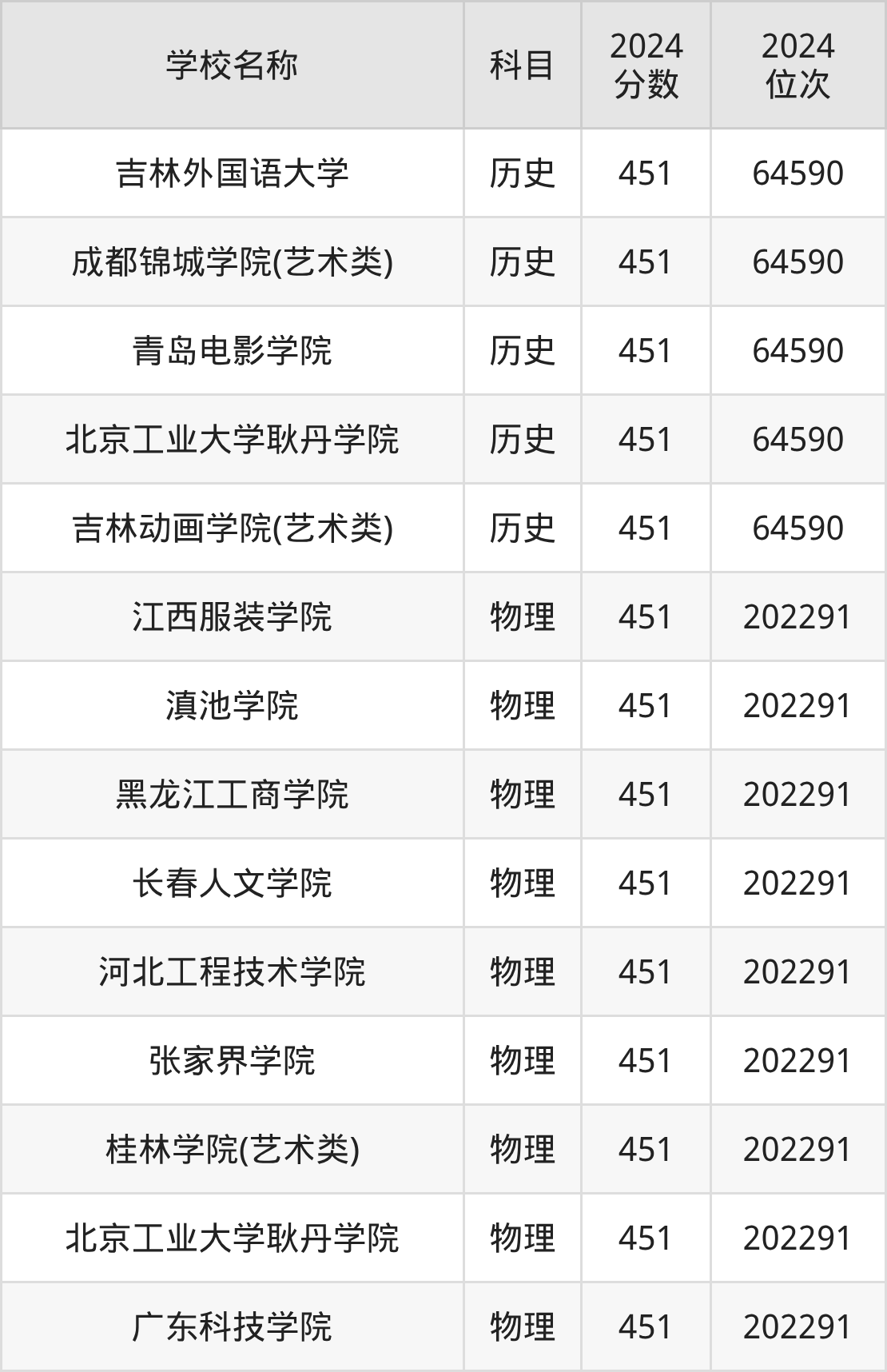 | 吉林动画学院 | 物理 | 451 | 166508 |