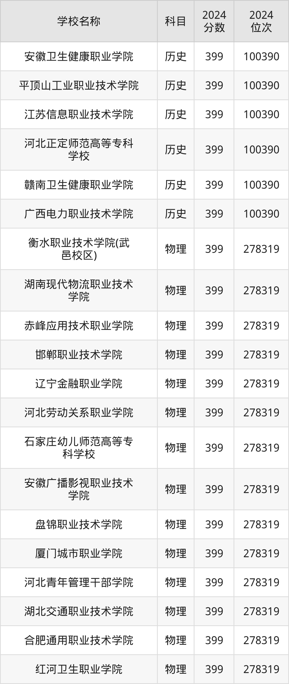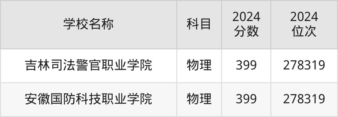 | 浙江安防职业技术学院 | 物理 | 399 | 236263 |