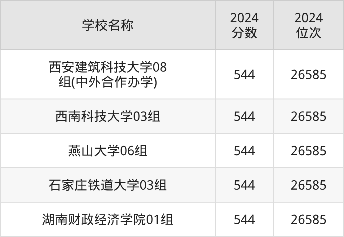 其中,544分位于陕西的学校有西安建筑科技大学。