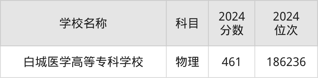 其中,物理组461分位于吉林的学校有白城医学高等专科学校。
