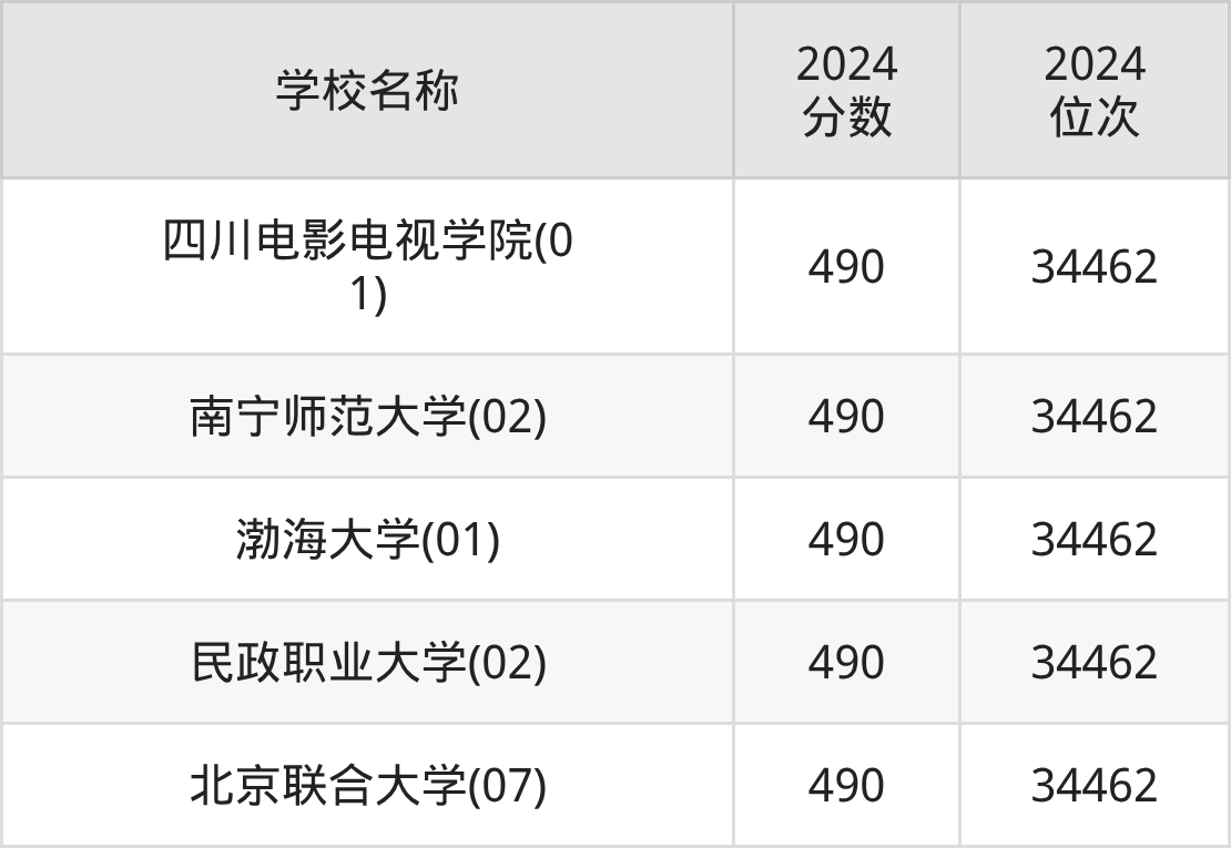 其中,490分位于北京的学校有民政职业大学、北京联合大学。