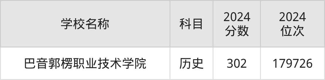 其中,历史组302分位于新疆的学校有巴音郭楞职业技术学院。