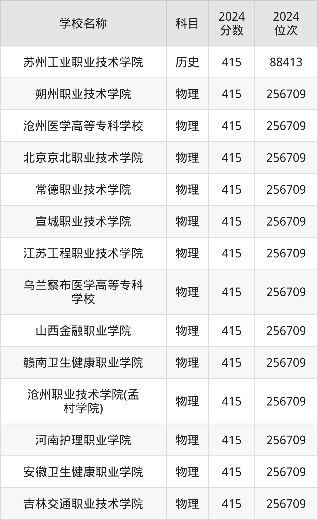 | 河北交通职业技术学院 | 物理 | 415 | 277415 |