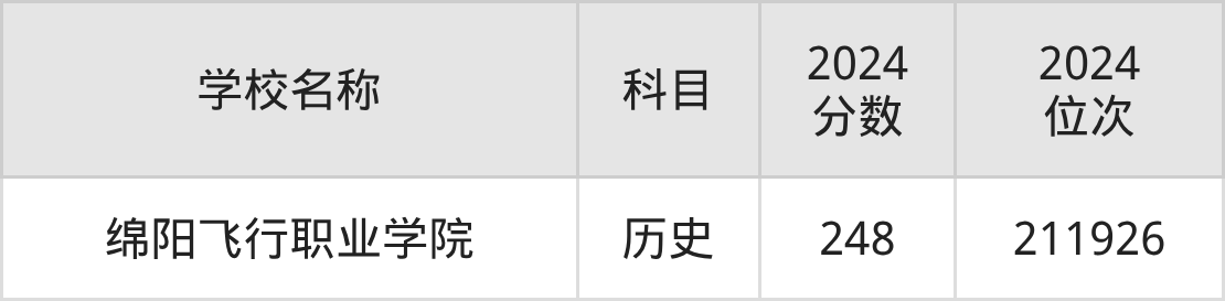其中,历史组248分位于四川的学校有绵阳飞行职业学院。
