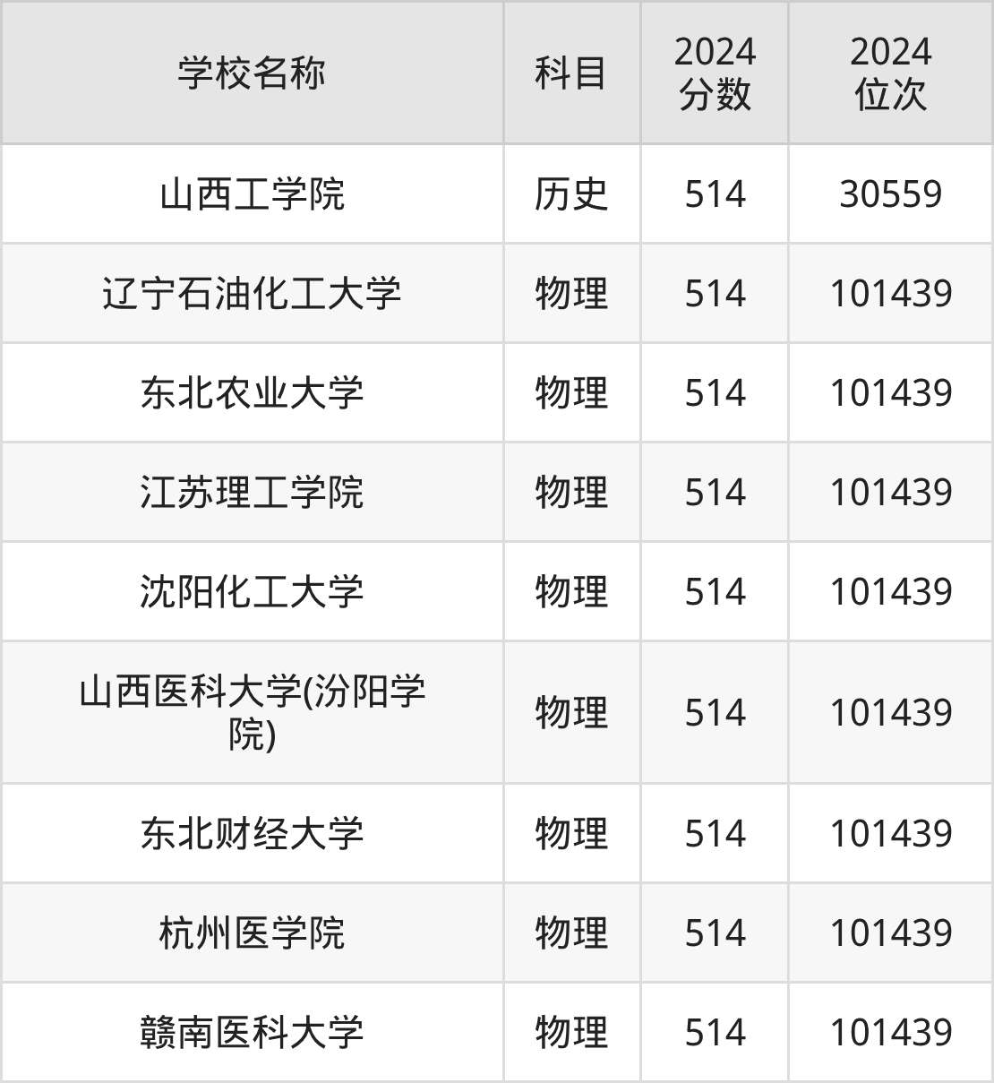 | 山西工学院 | 物理 | 514 | 136965 |