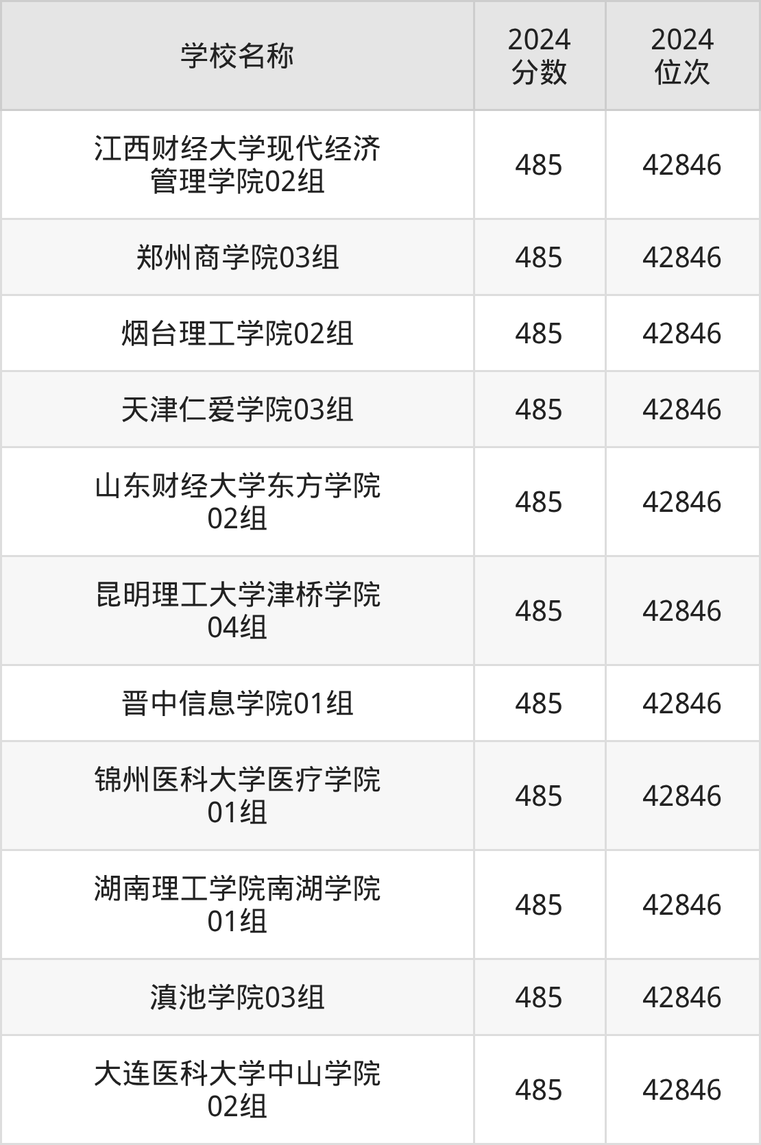 回看2024年天津高考最低分为485分的二本大学名单,有11条数据。