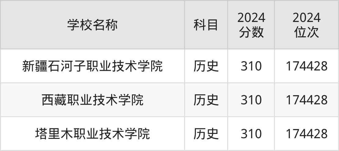 其中,历史组310分位于新疆的学校有新疆石河子职业技术学院。