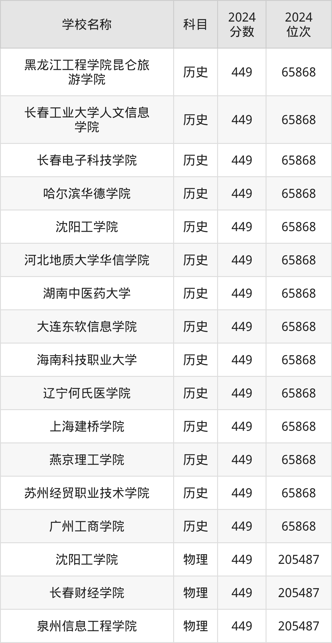 其中,物理组449分位于辽宁的学校有沈阳工学院。历史组449分位于河北的学校有河北地质大学华信学院。