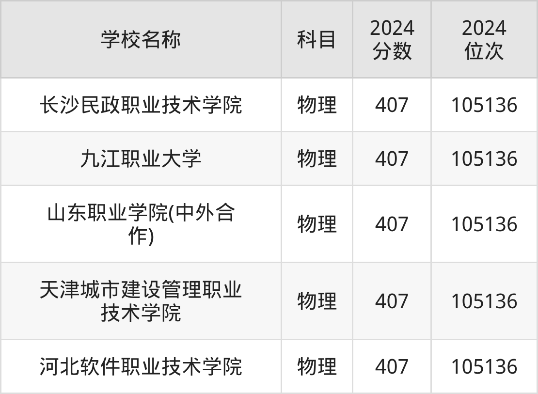 其中,物理组407分位于湖南的学校有长沙民政职业技术学院。