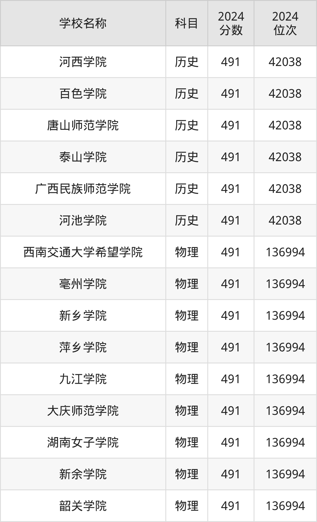 其中,物理组491分位于广东的学校有韶关学院。历史组491分位于广东的学校有唐山师范学院。