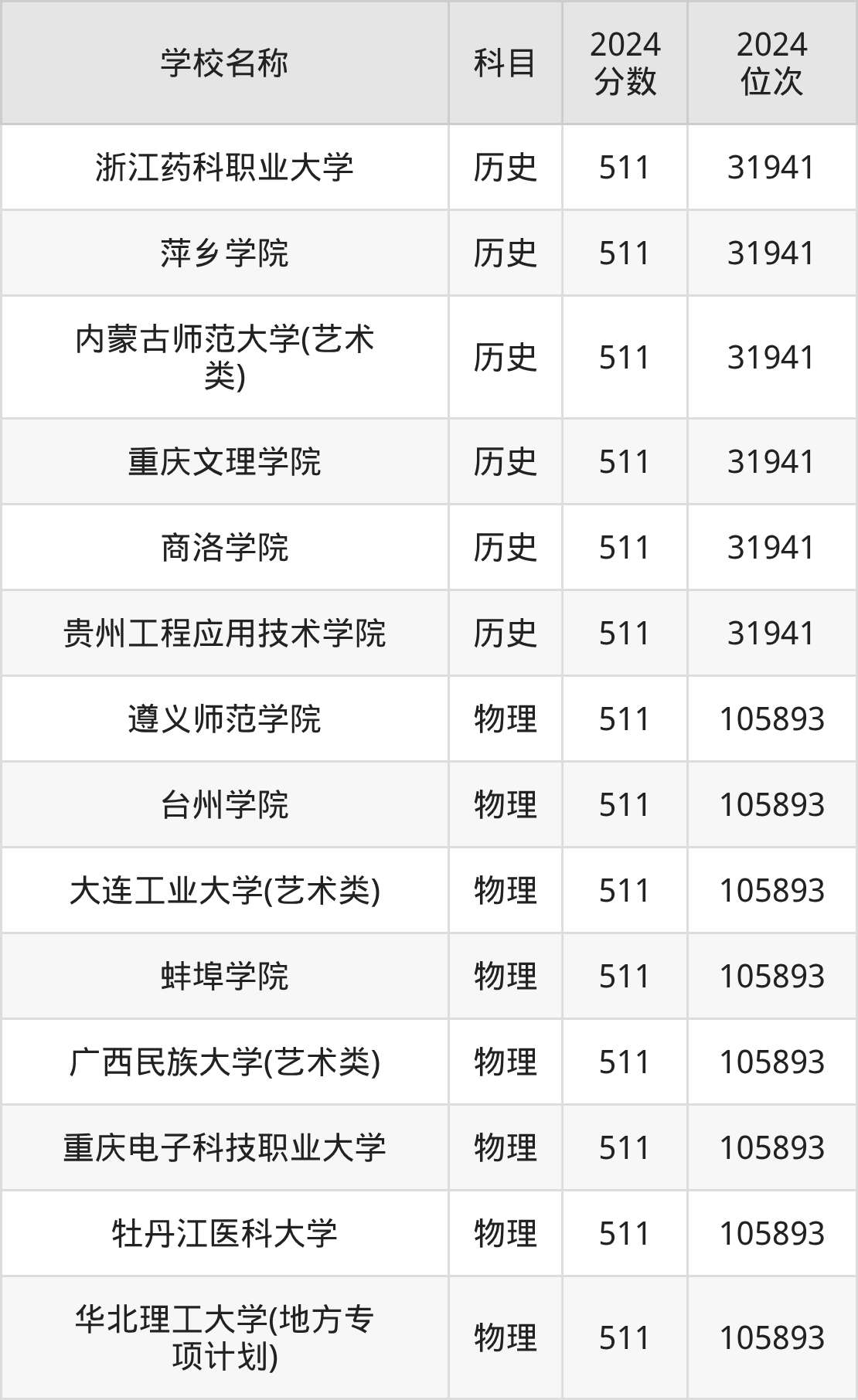 | 广西警察学院 | 物理 | 511 | 142016 |