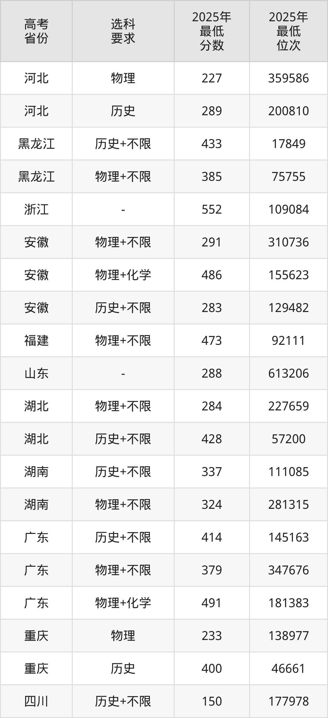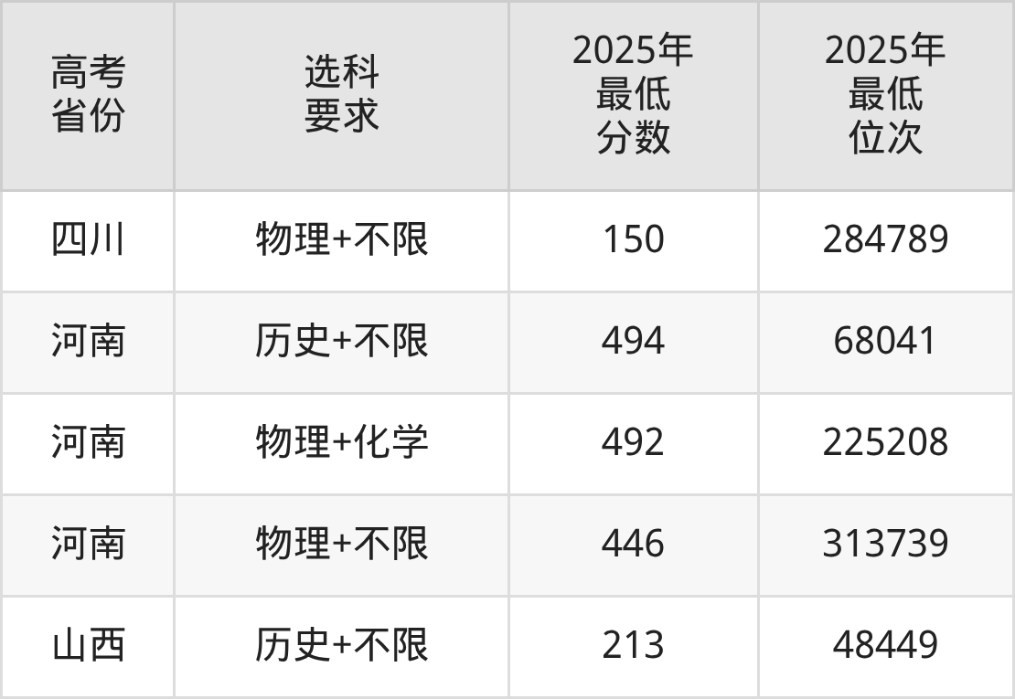 在2025年四川高考物理类招生时,公办本科收分最低的是河北科技工程职业技术大学专业组101,最低分是150分、位次是284789位。再看四川电影电视学院,2025年在四川物理类的最低录取分数线是150分,最低位次是284789位。