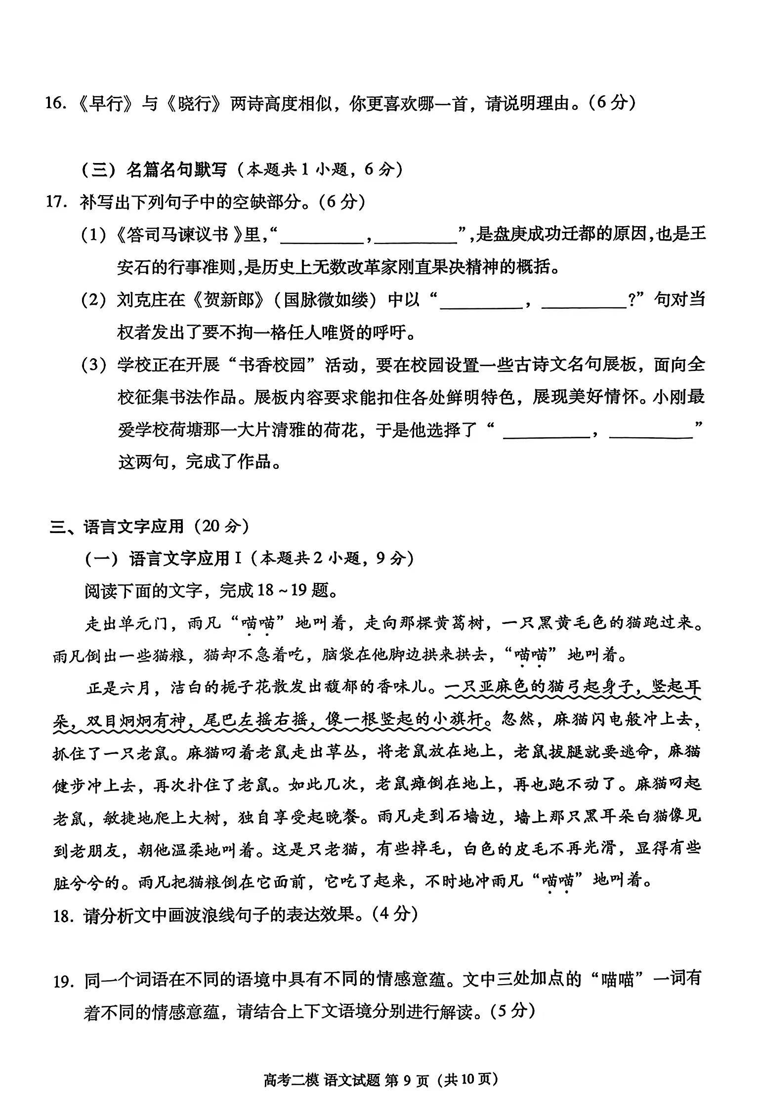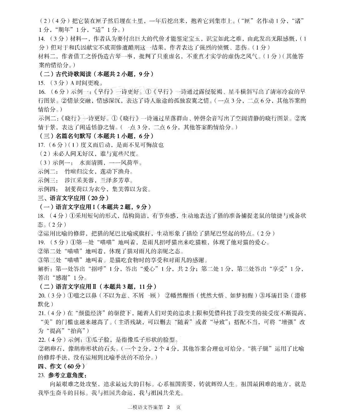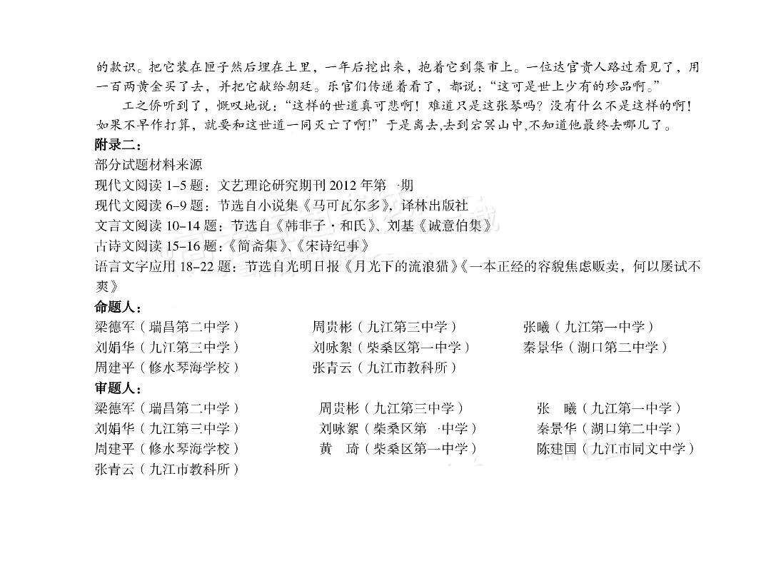 答案及试卷解析: 陈老师已九江二模更新语文试卷和详细答案,同学们可以仔细核对试卷,估算分数。