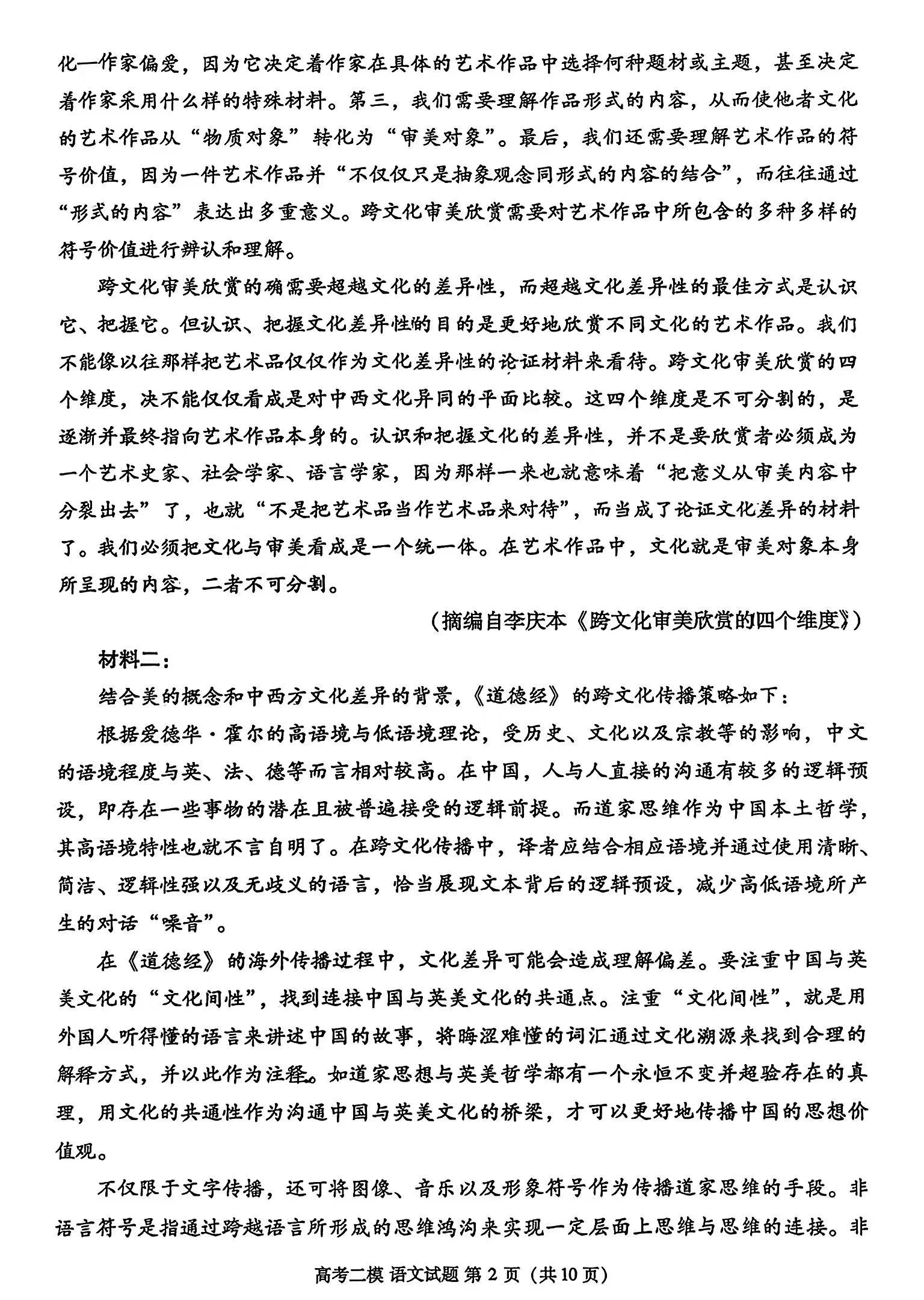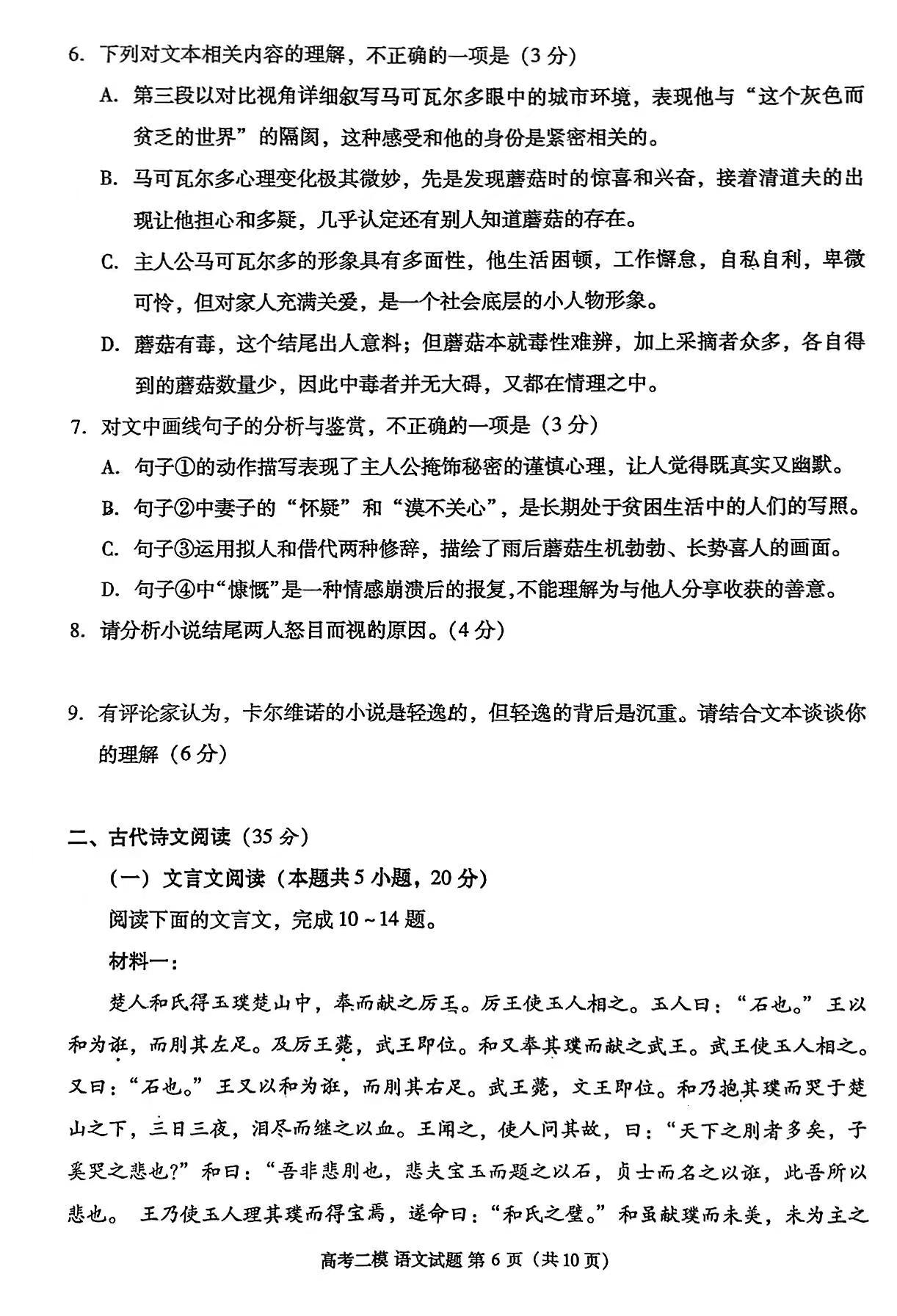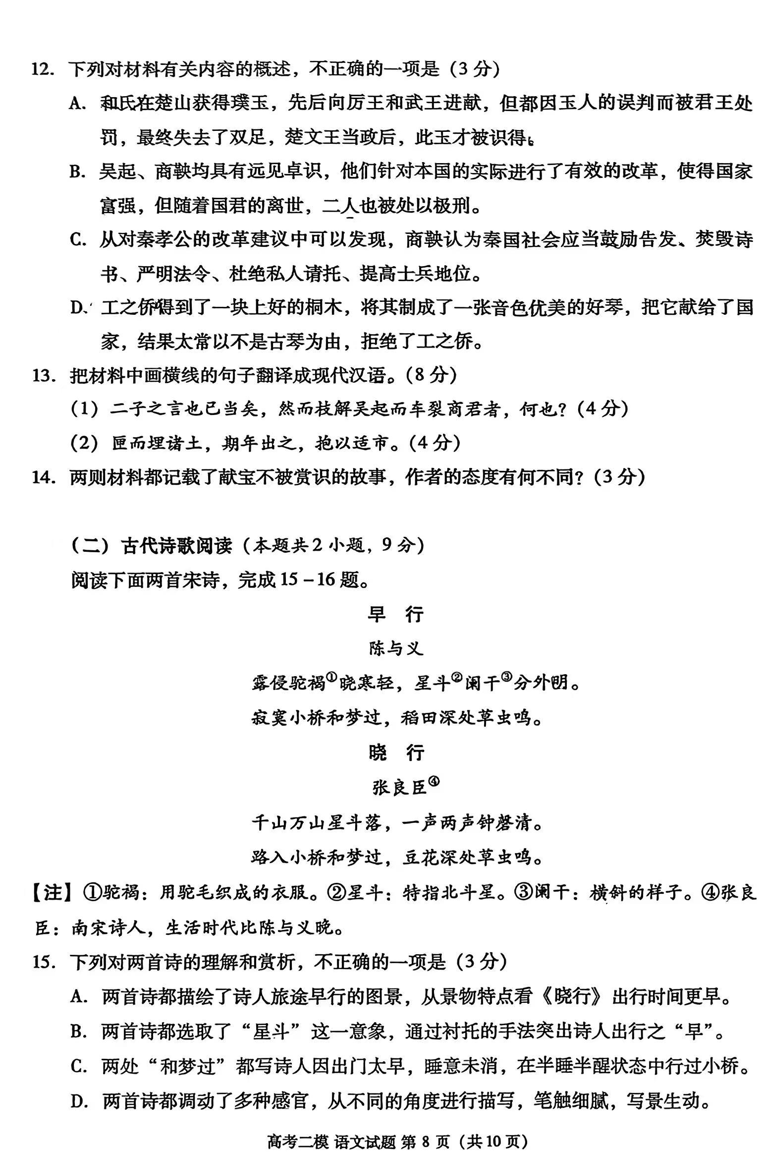 一、2024九江二模语文答案及试卷