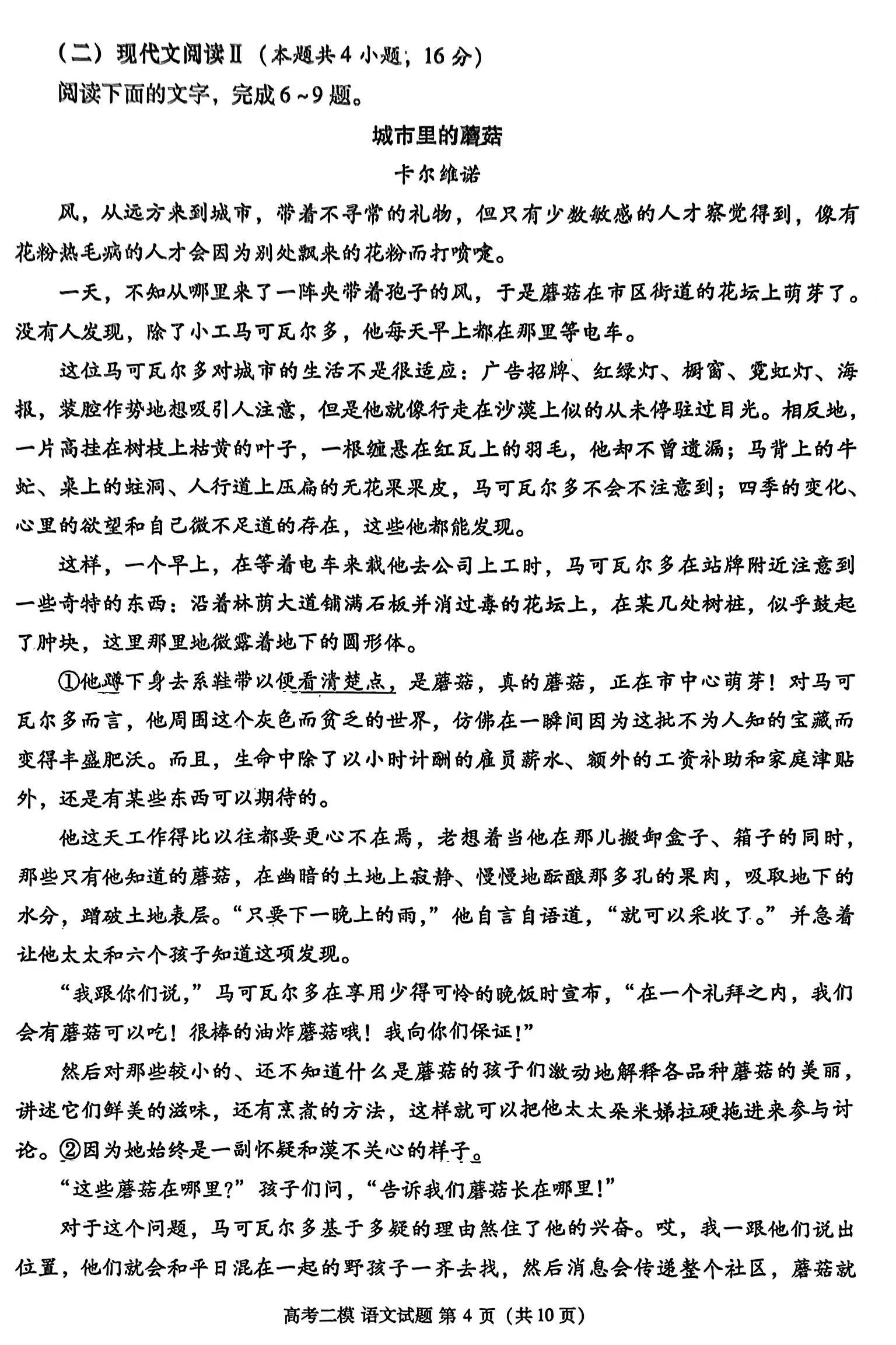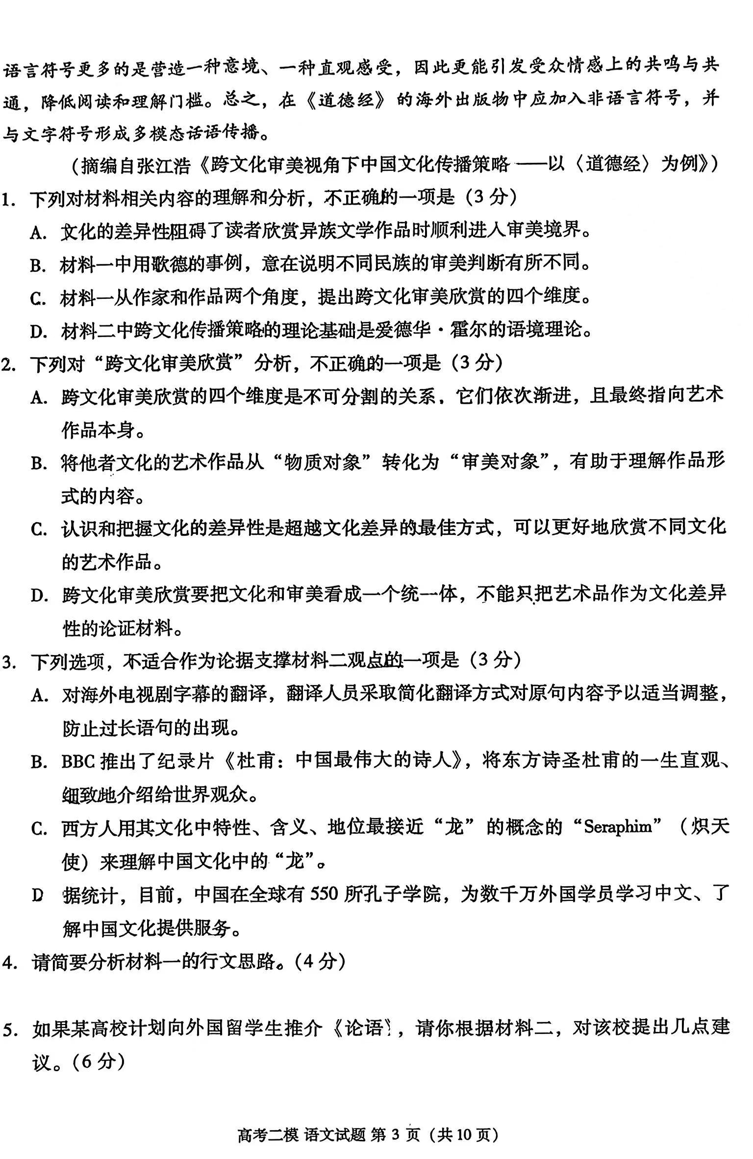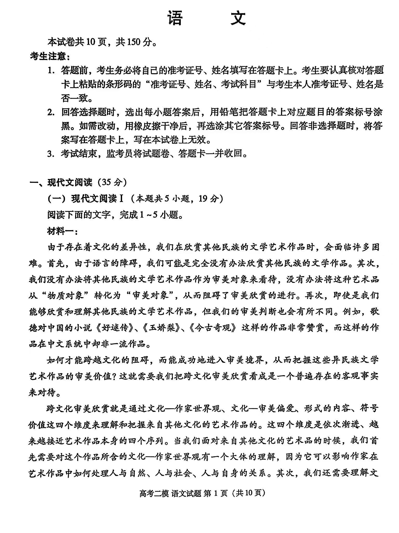 一、2024九江二模语文答案及试卷