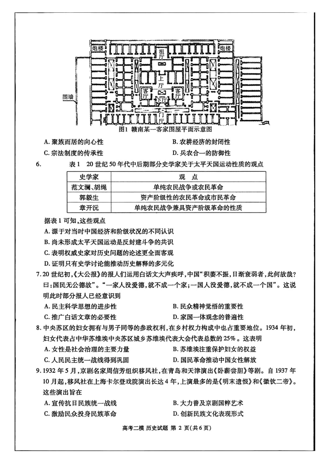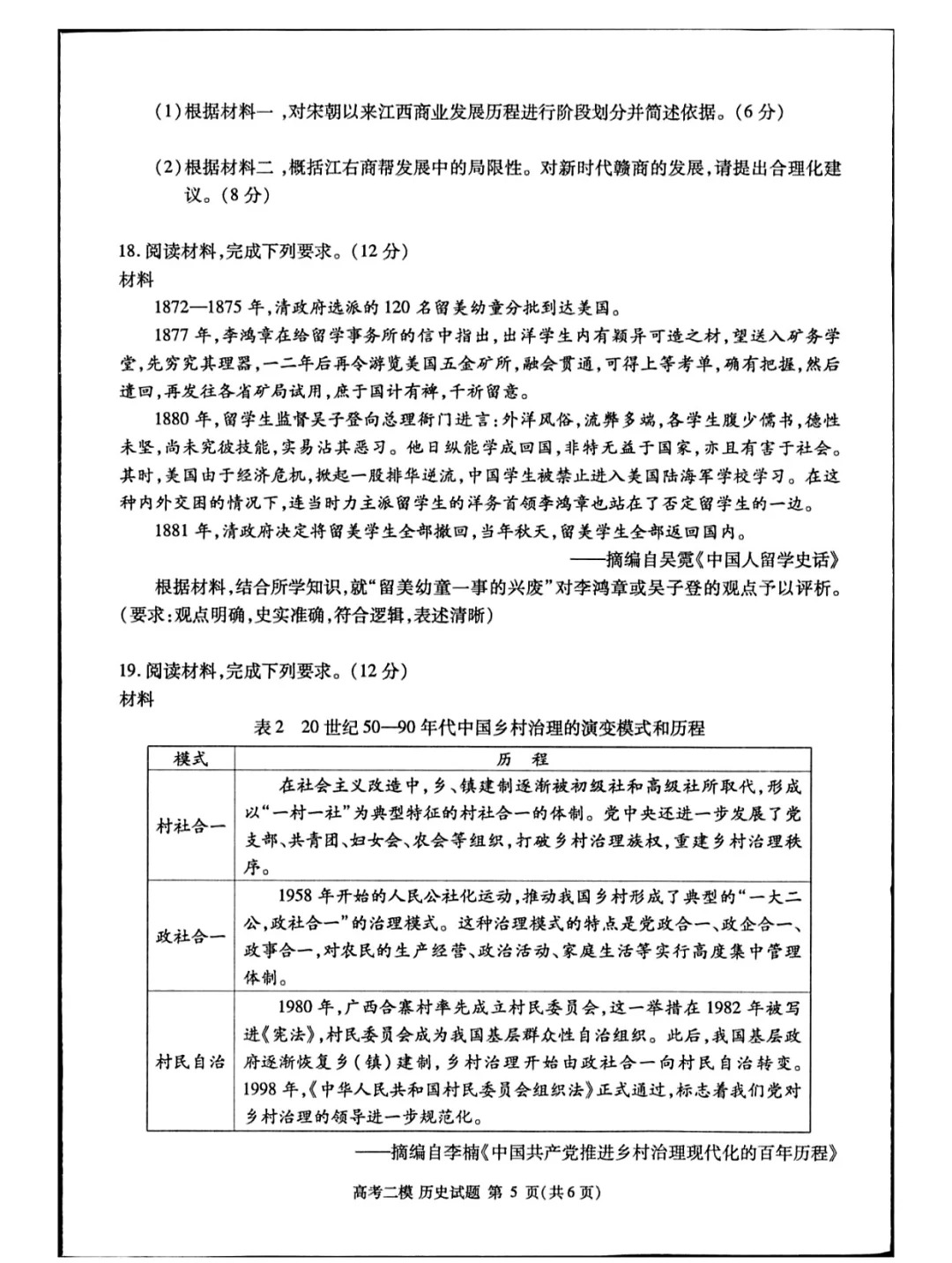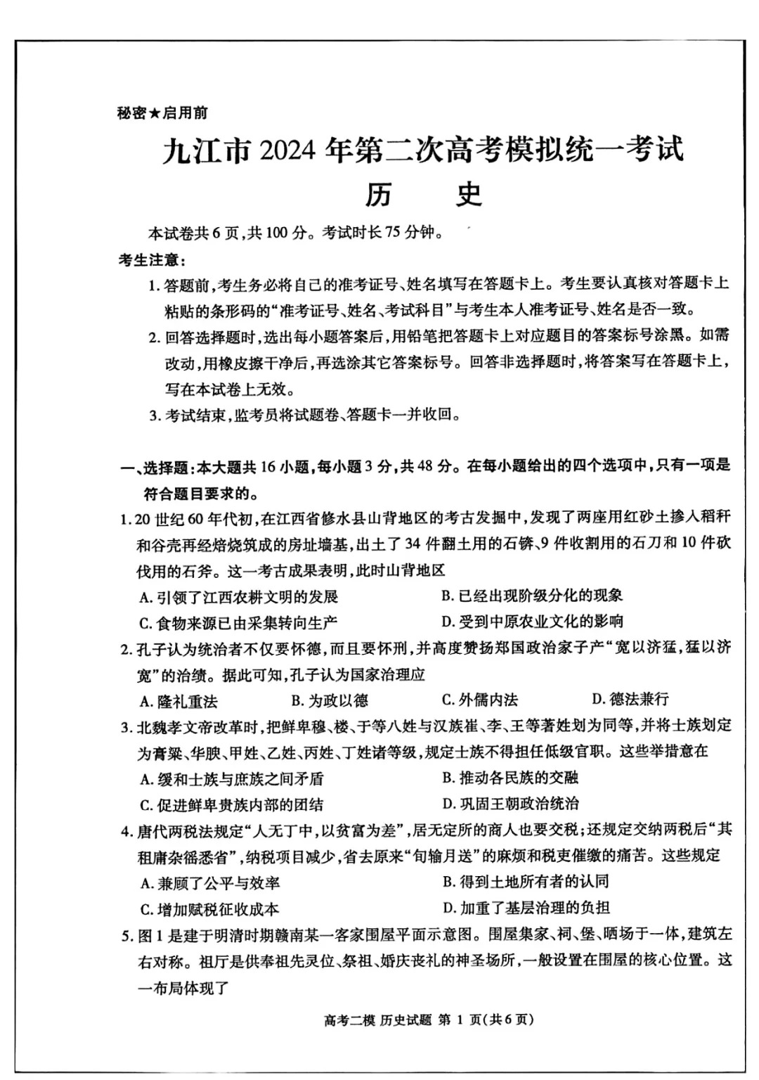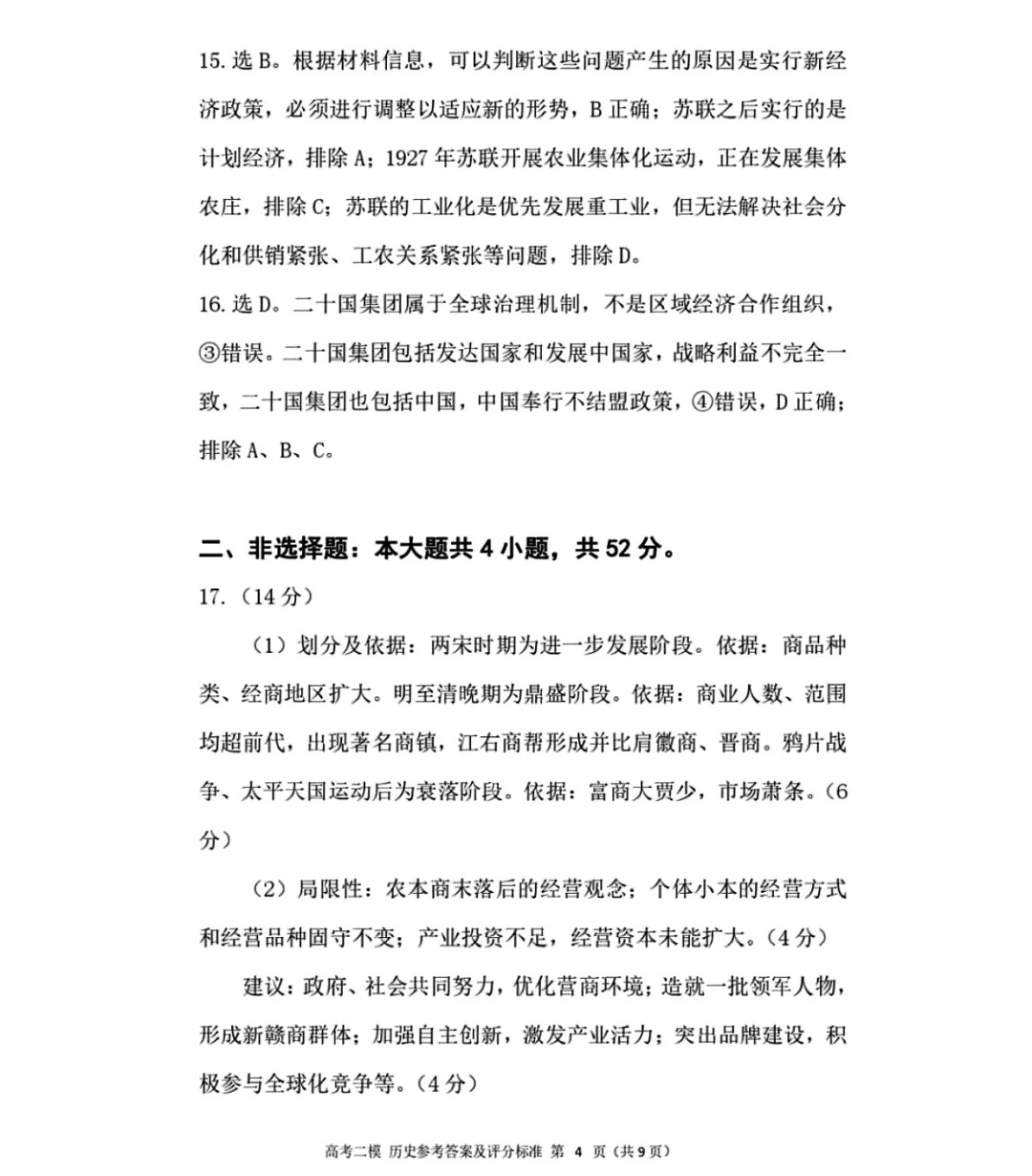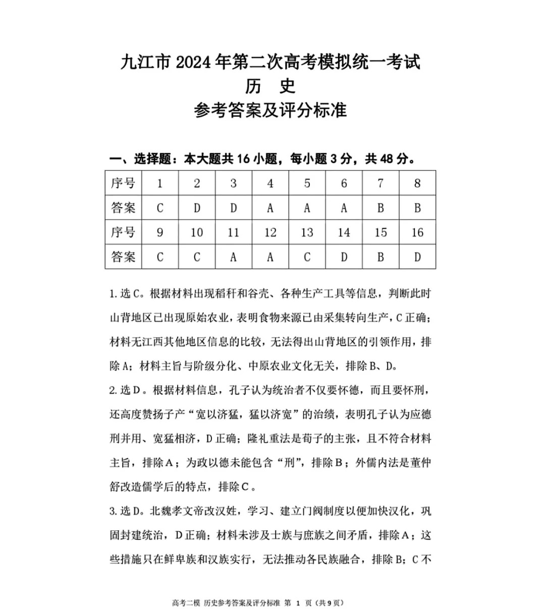 五、2024九江二模历史答案及试卷