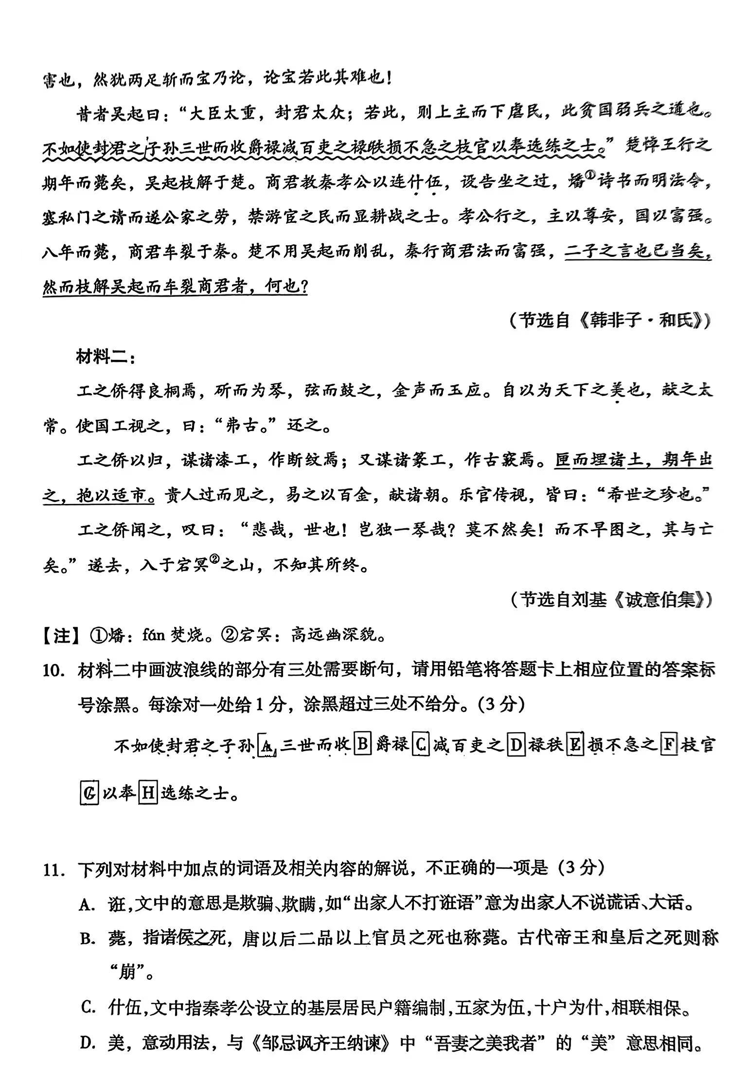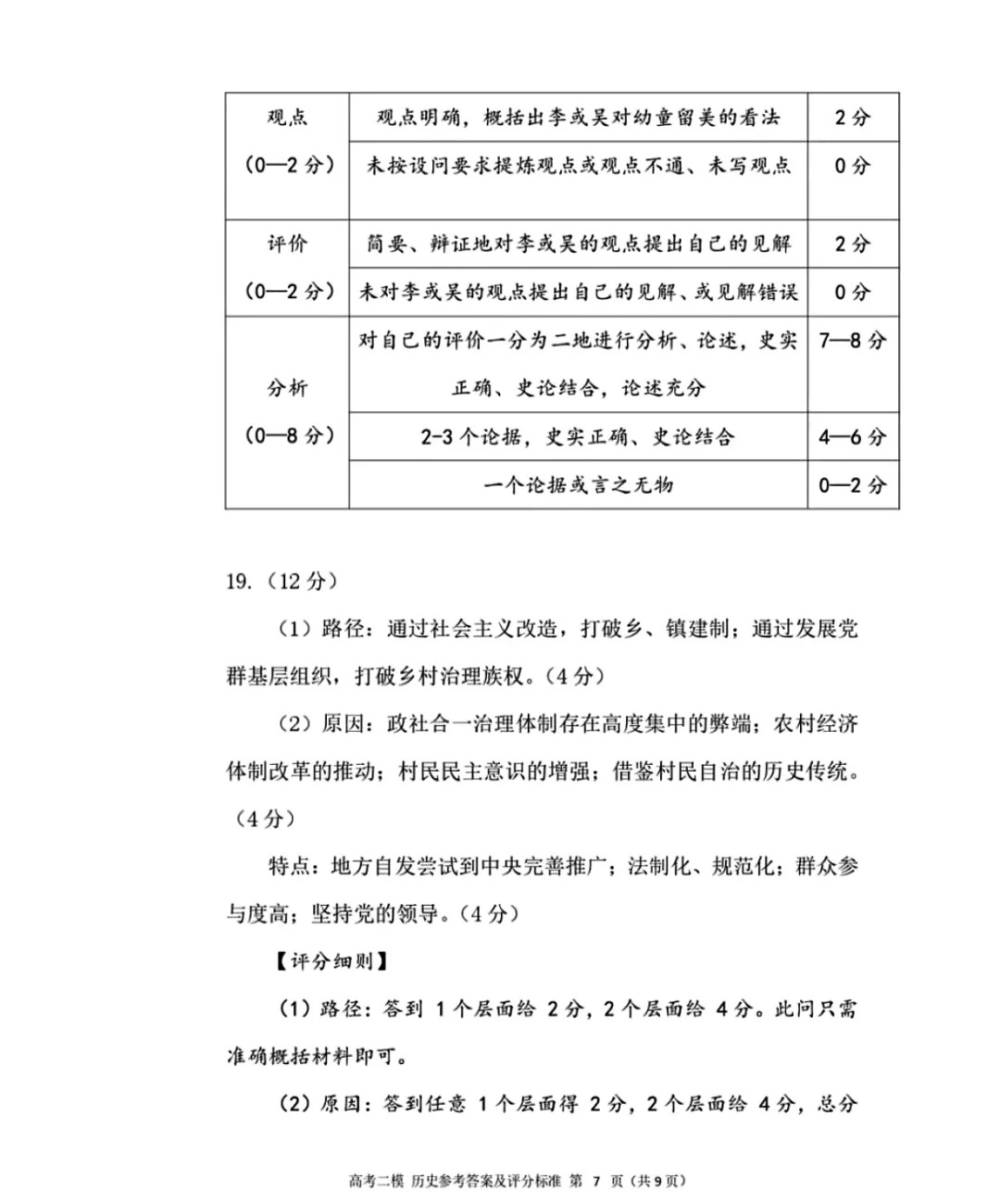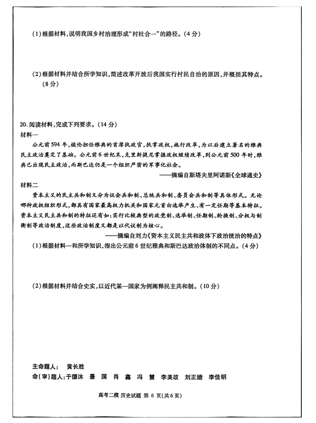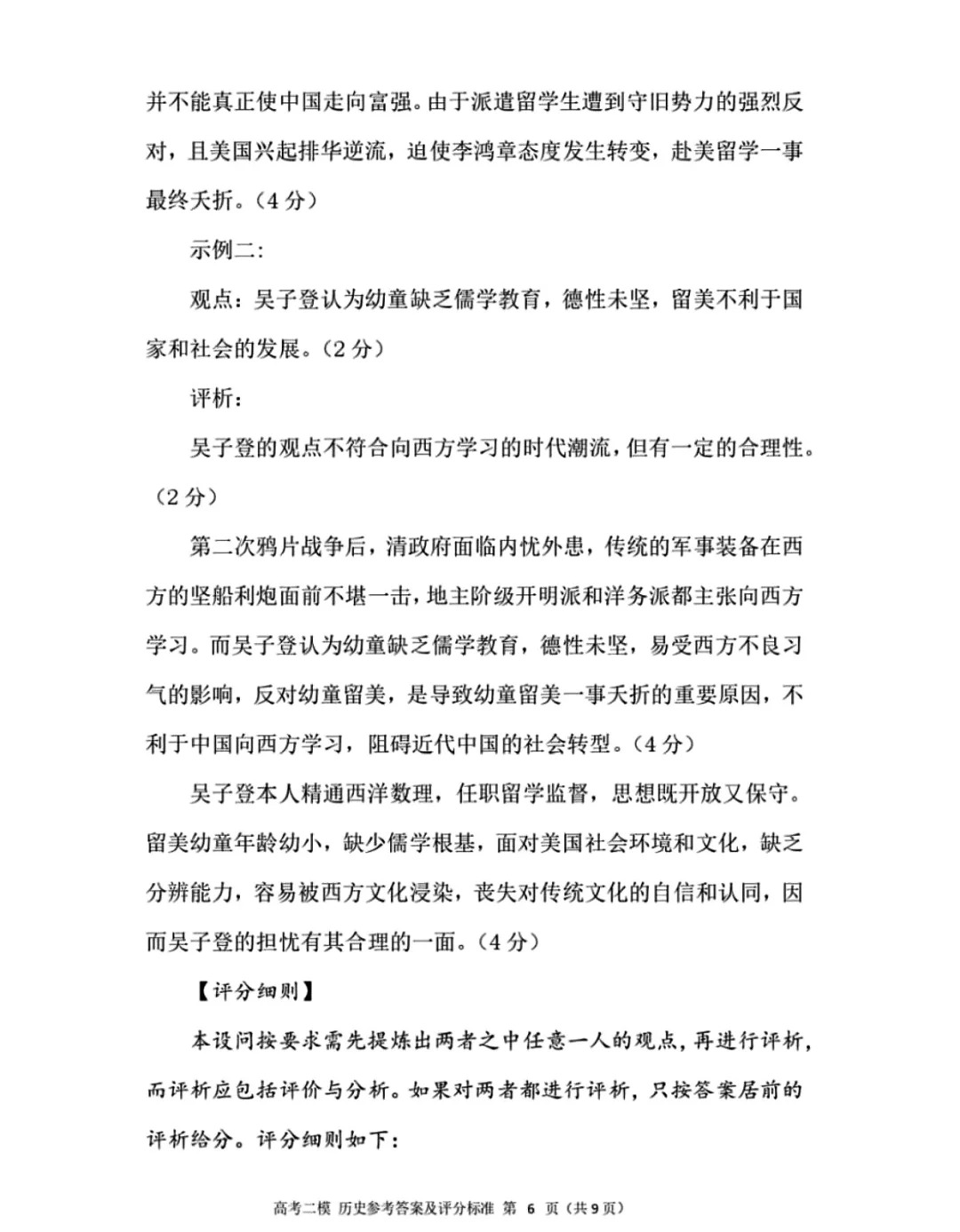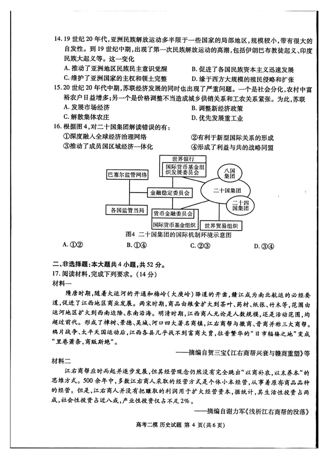 五、2024九江二模历史答案及试卷