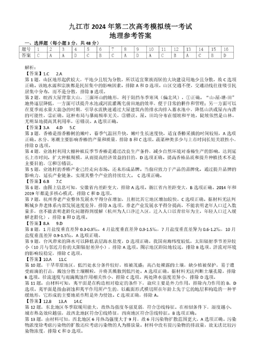 七、 2024九江二模地理答案及试卷