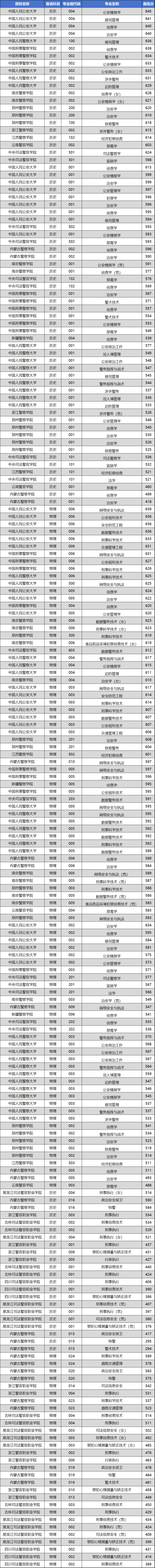 顶尖院校分数居高:中国人民公安大学、中国刑事警察学院的相关专业组,录取最低分普遍在630分以上,竞争异常激烈。