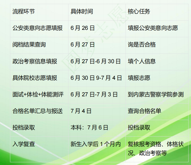 这是内蒙古特有的关键环节。考生需登录“内蒙古招生考试信息网”,在“公安类意向志愿”栏目进行填报。此环节只需选择本科或专科意向类别,无需选择具体院校。考试院将根据意向志愿和成绩进行“阅档”,初步筛选出具备参加后续测评资格的考生名单。