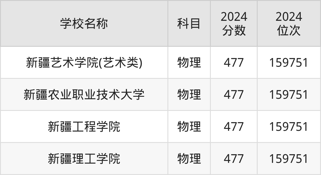 其中,物理组477分位于新疆的学校有新疆艺术学院(艺术类)。