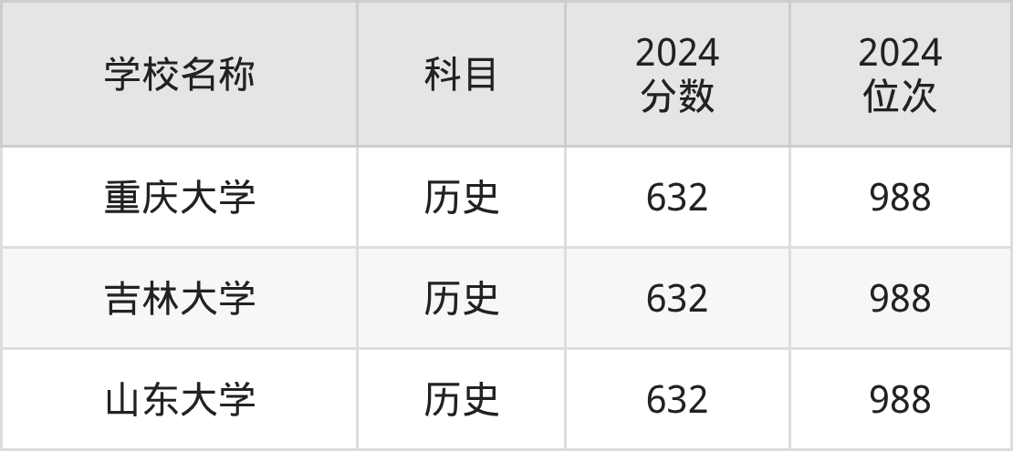 其中,历史组632分位于重庆的学校有重庆大学。