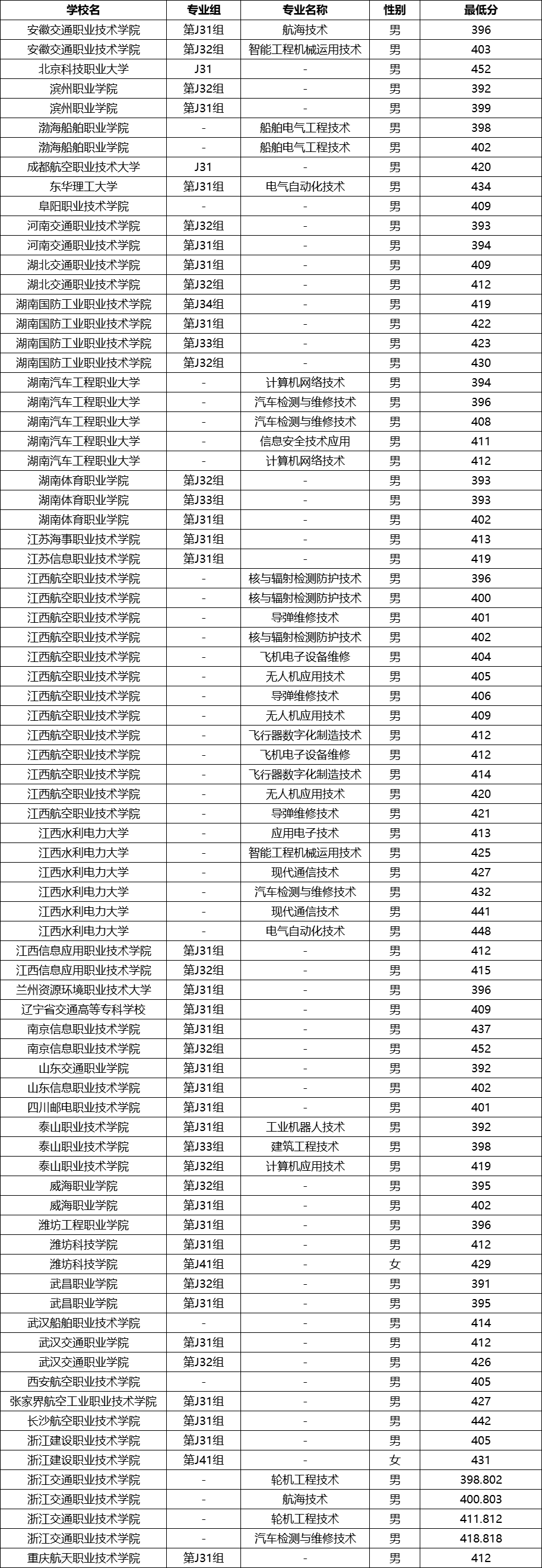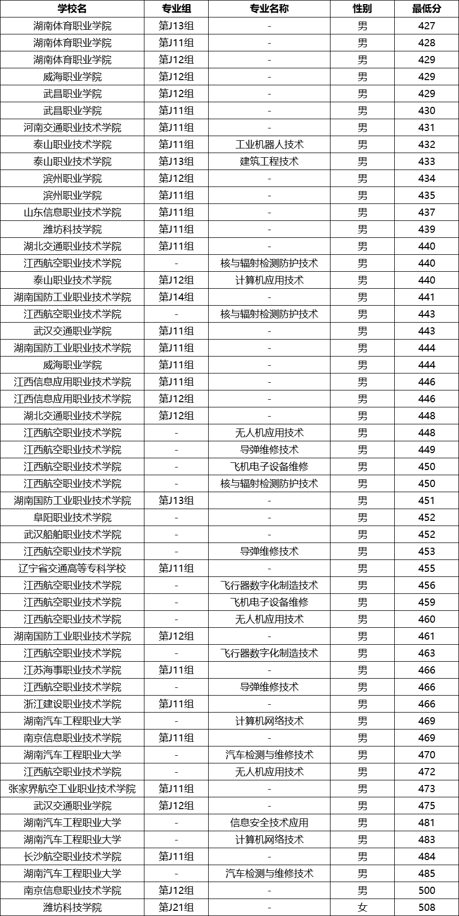 武昌职业学院是物理类录取分数最低的定向士官招生大学,分数线为391分。