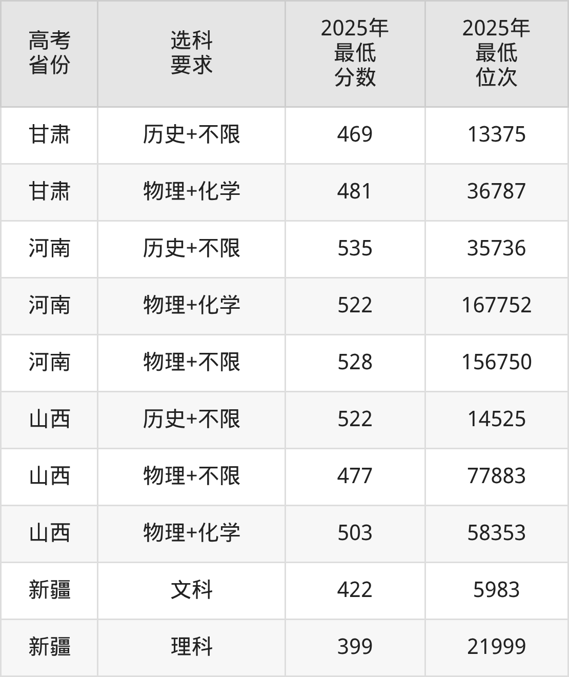 在2025年河南高考物理类招生时,211收分最低的是东北林业大学第201组(中外合作办学组),最低分是434分、位次是335904位。再看洛阳理工学院,2025年在河南物理类的最低录取分数线是522分,最低位次是167752位。