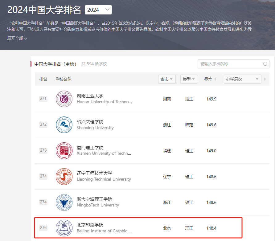 北印源于1958年建立的文化学院,是中国印刷行业中最早的高等学府之一,被称为“印刷界的黄埔军校”。北印在2024年软科中国大学排名为276名,办学实力强劲,在行业内的地位非常高。