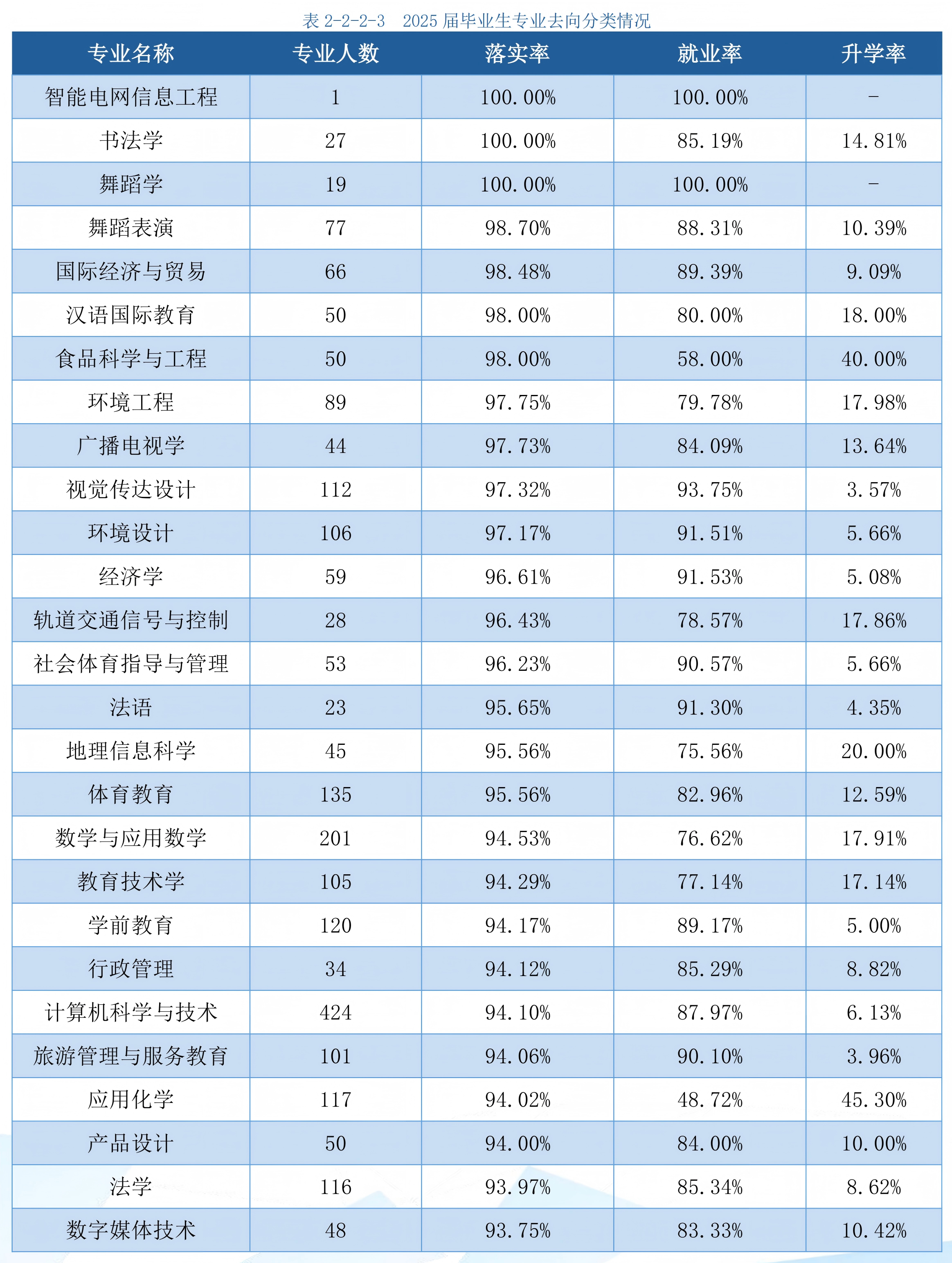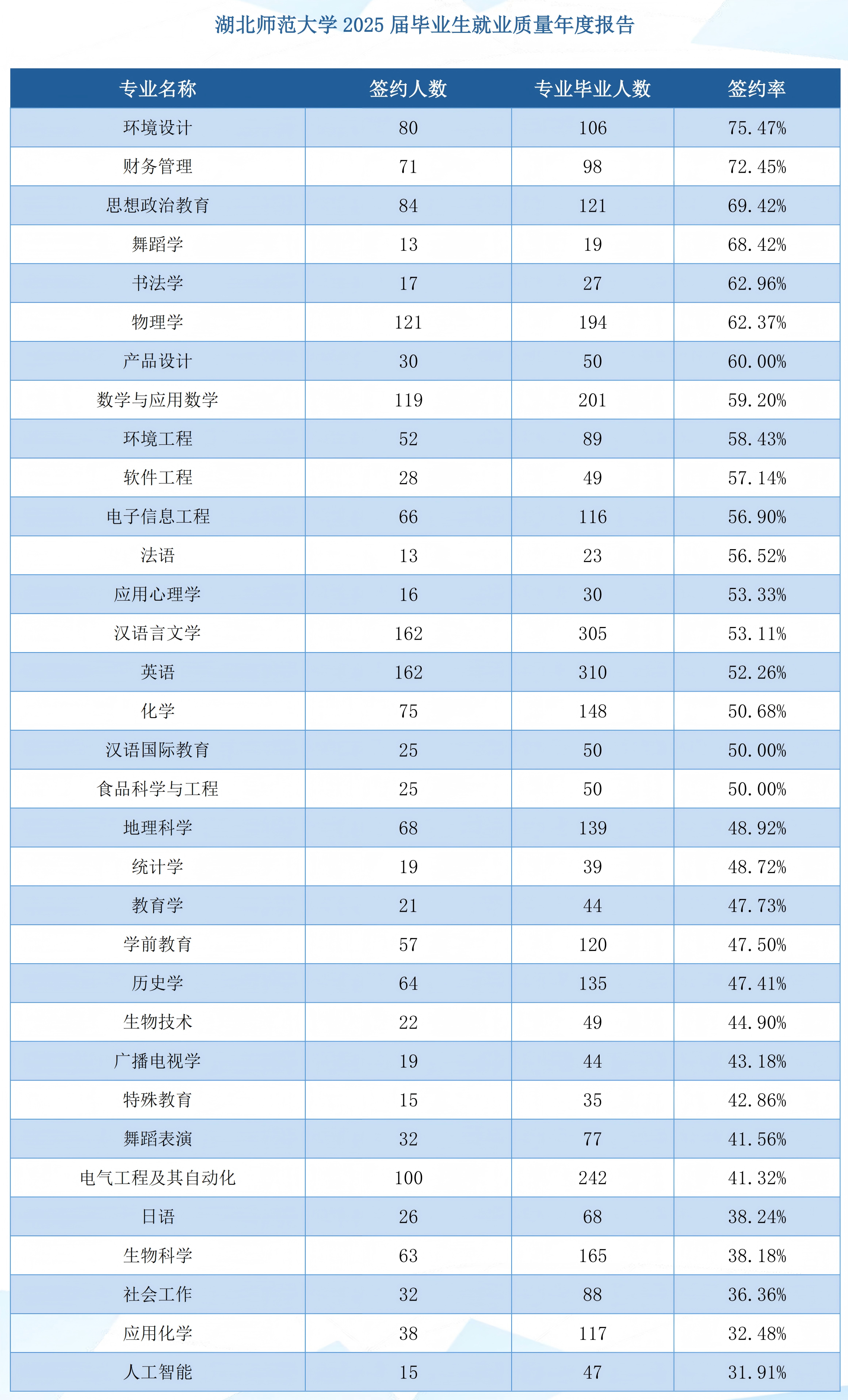 二、湖北师范大学各专业就业率、升学率