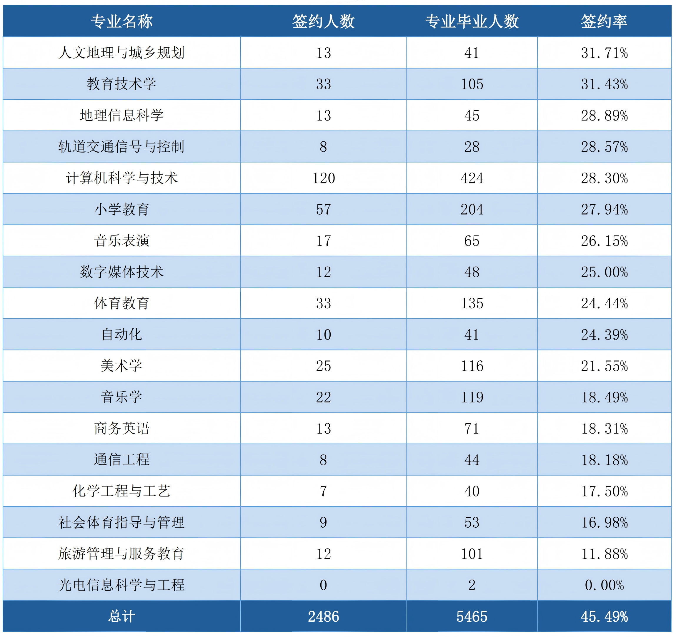 报告显示,学校总体签约人数仅2486人,签约率45.49%;728 人读研(升学率 13.32%)。这意味着5465名本科生中,2979人既未签约就业,也未成功读研,占比高达54.51%。
