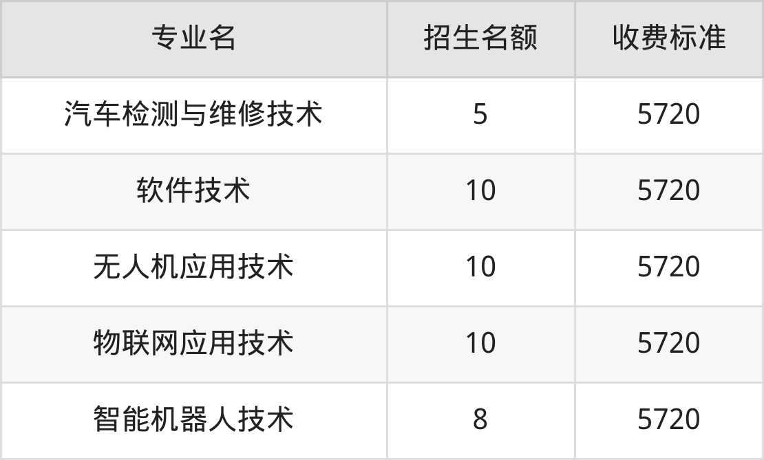 | 高职专科批 | 无人机应用技术 | 10 |