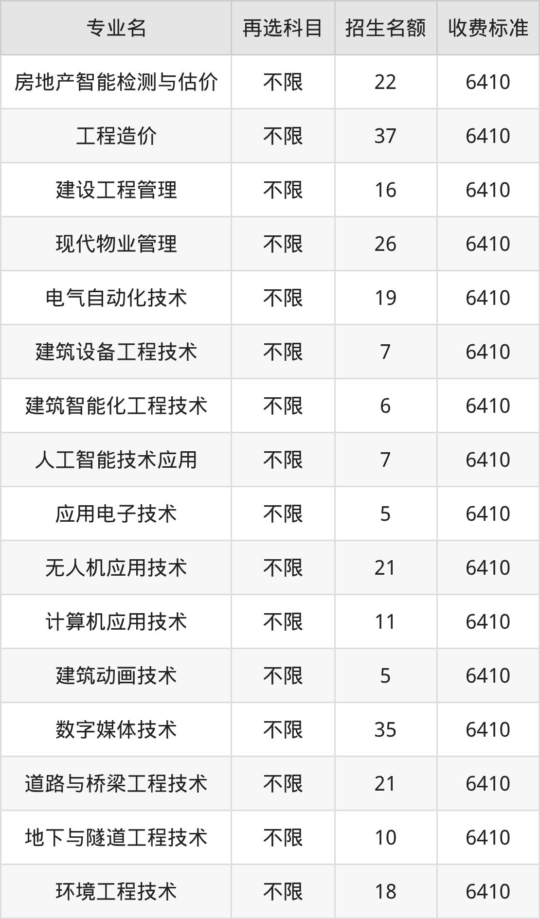 3.建筑工程技术:学费是6410元